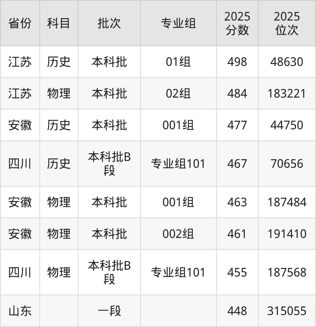 2025年安徽文达信息工程学院全国录取分数线448分到498分,录取最高在江苏(01组)、录取最低在山东。