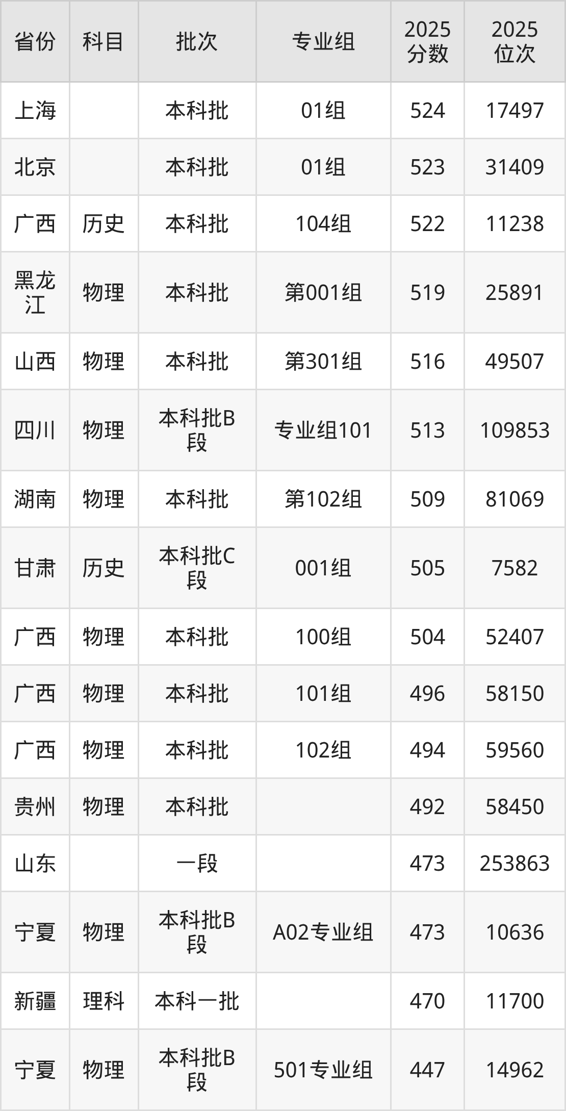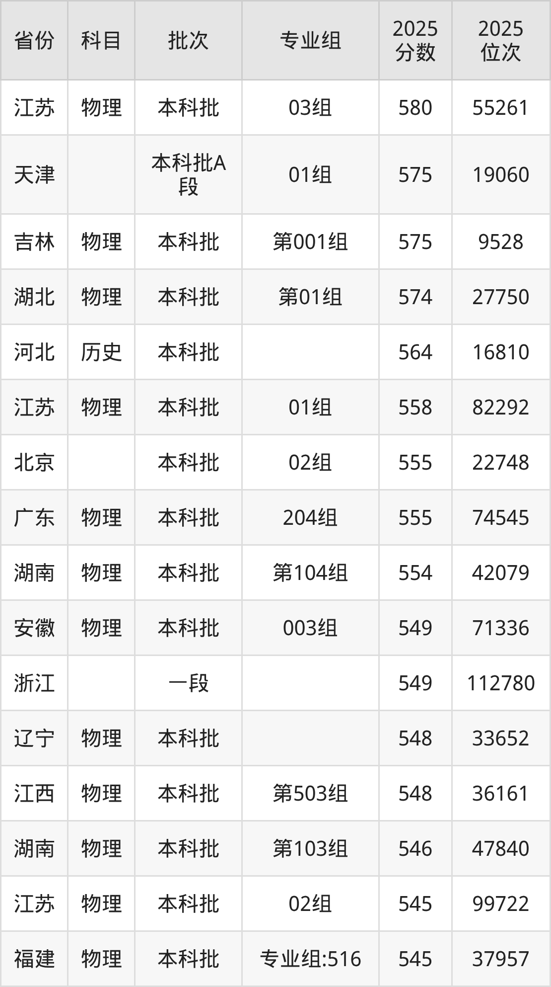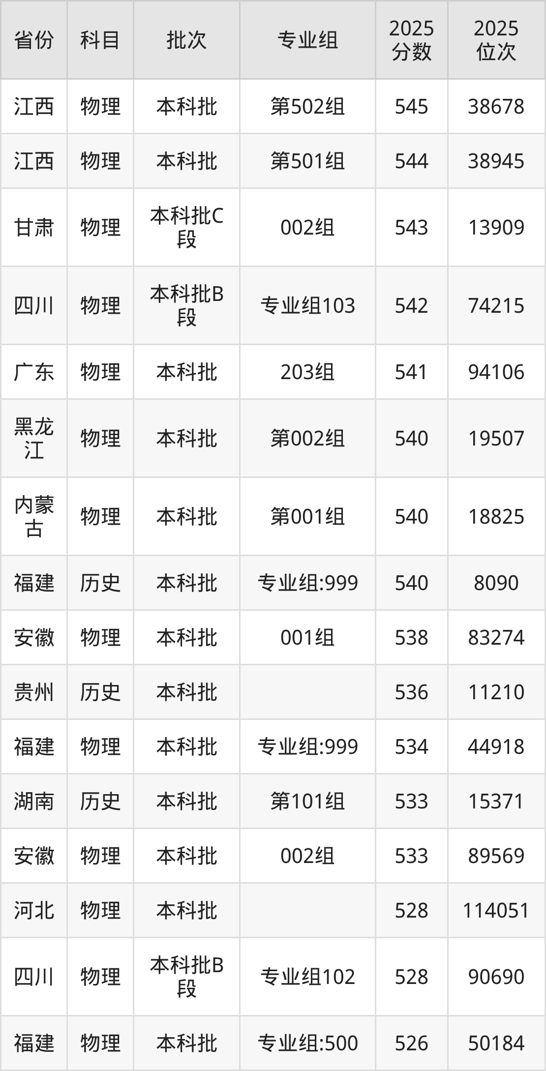 下面是2025年福建医科大学在全国各省录取最低分数据及位次,各位考生也可作为一个参考。