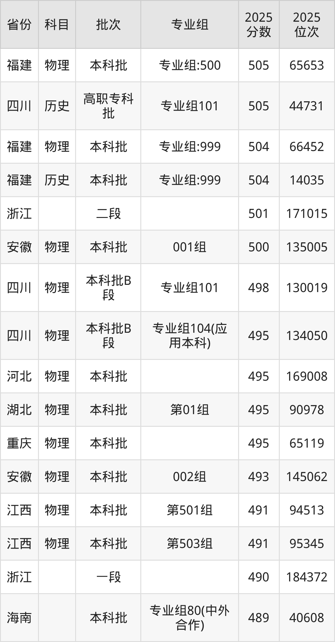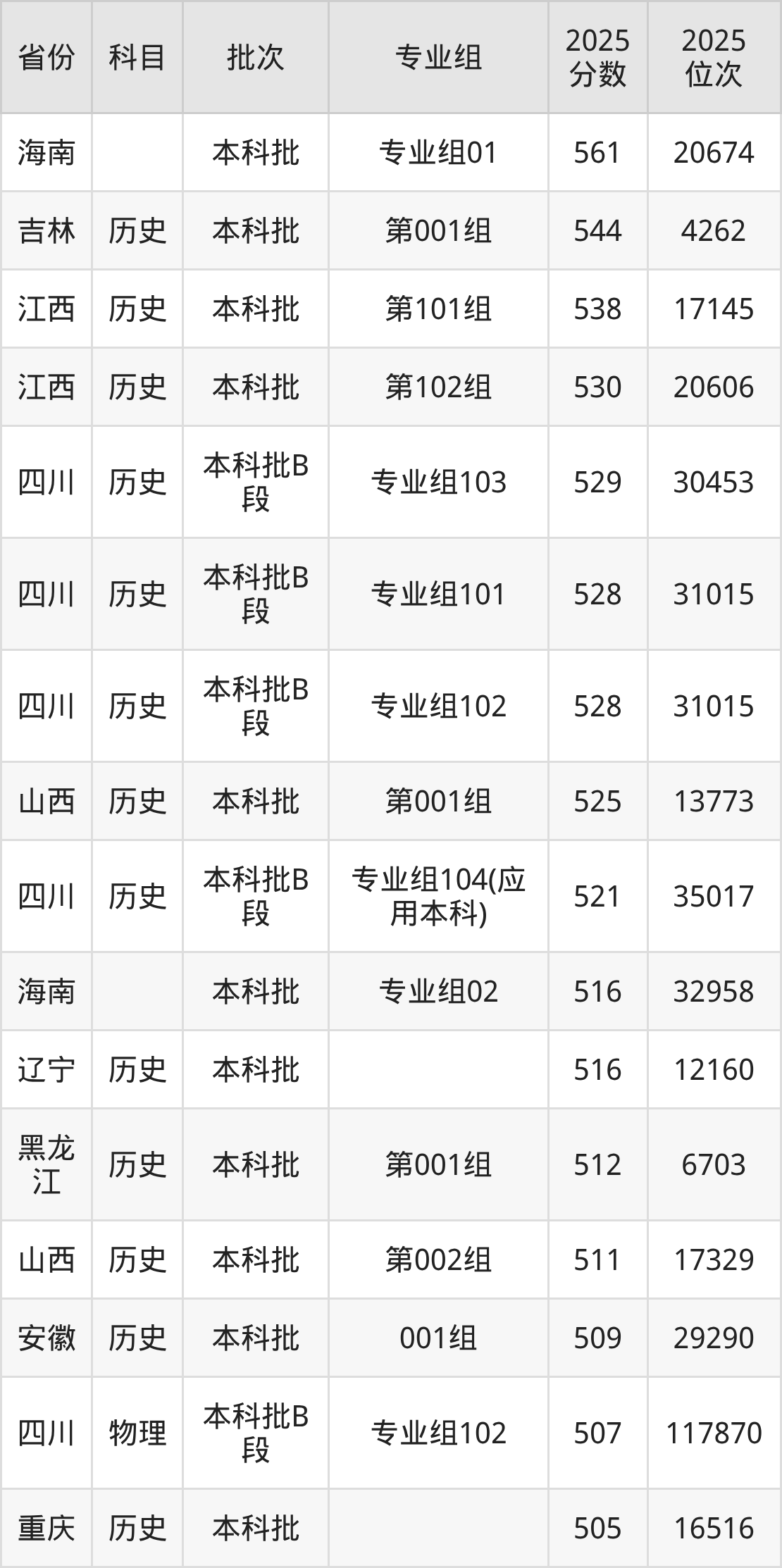 下面是2025年四川旅游学院在全国各省录取最低分数据及位次,各位考生也可作为一个参考。