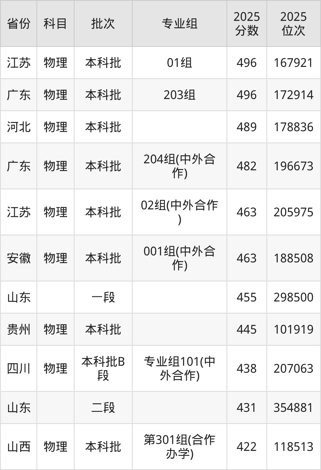 25、机器人工程:485分、位次222582名;