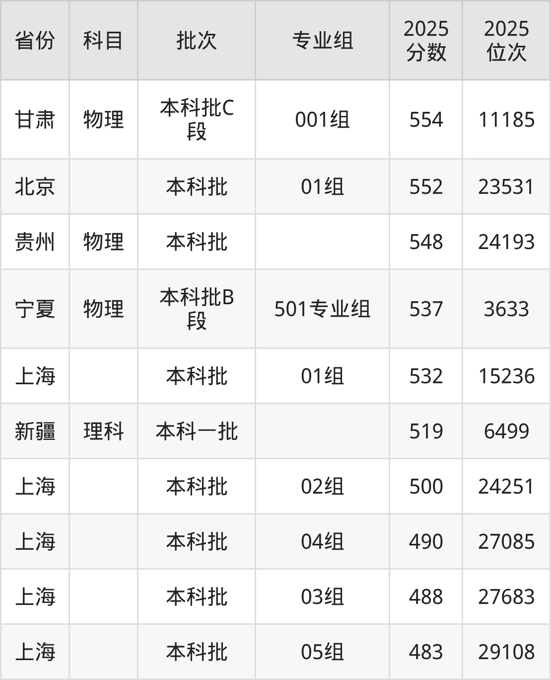下面是2025年上海电力大学在全国各省录取最低分数据及位次,各位考生也可作为一个参考。
