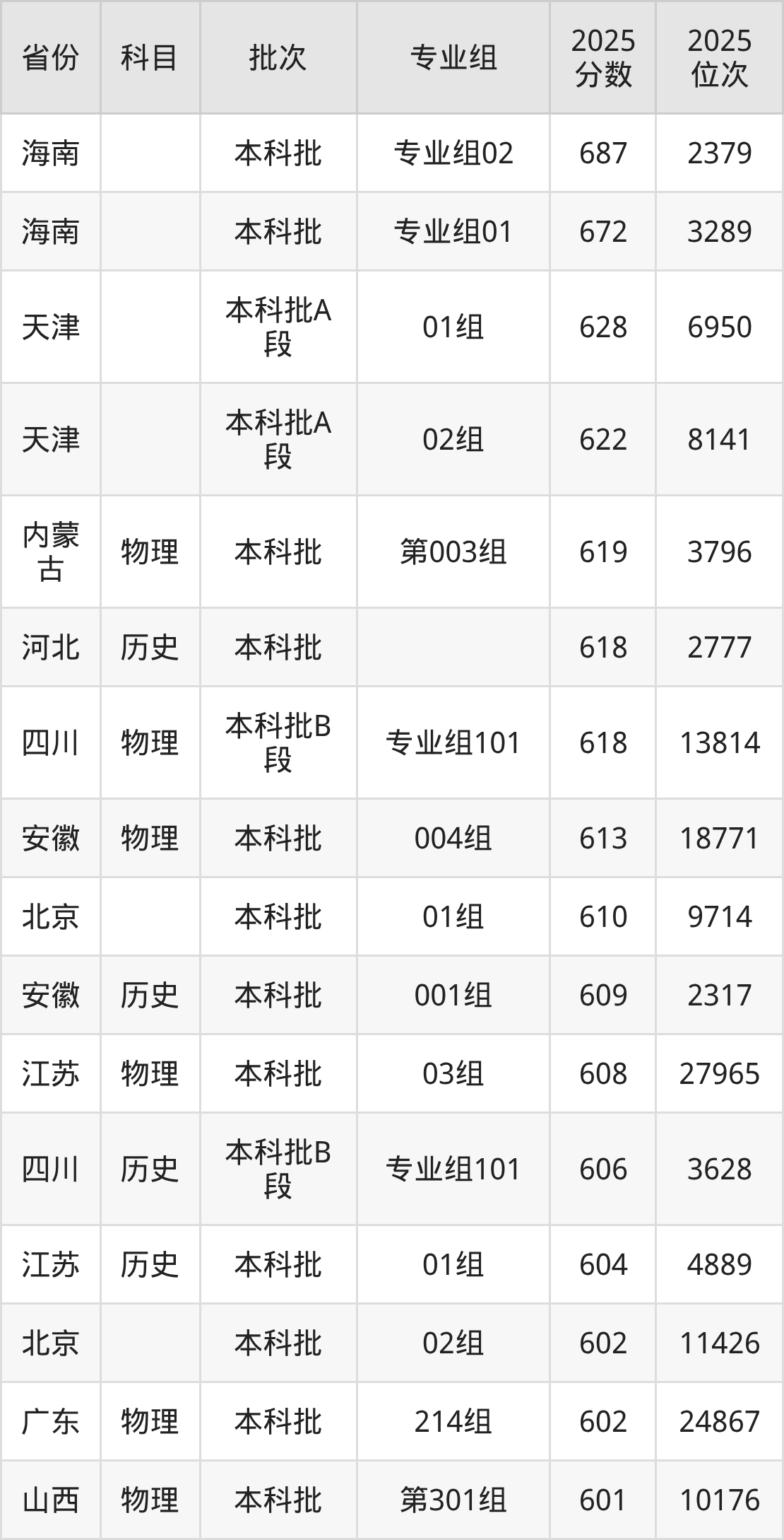 下面是2025年北京中医药大学在全国各省录取最低分数据及位次,各位考生也可作为一个参考。