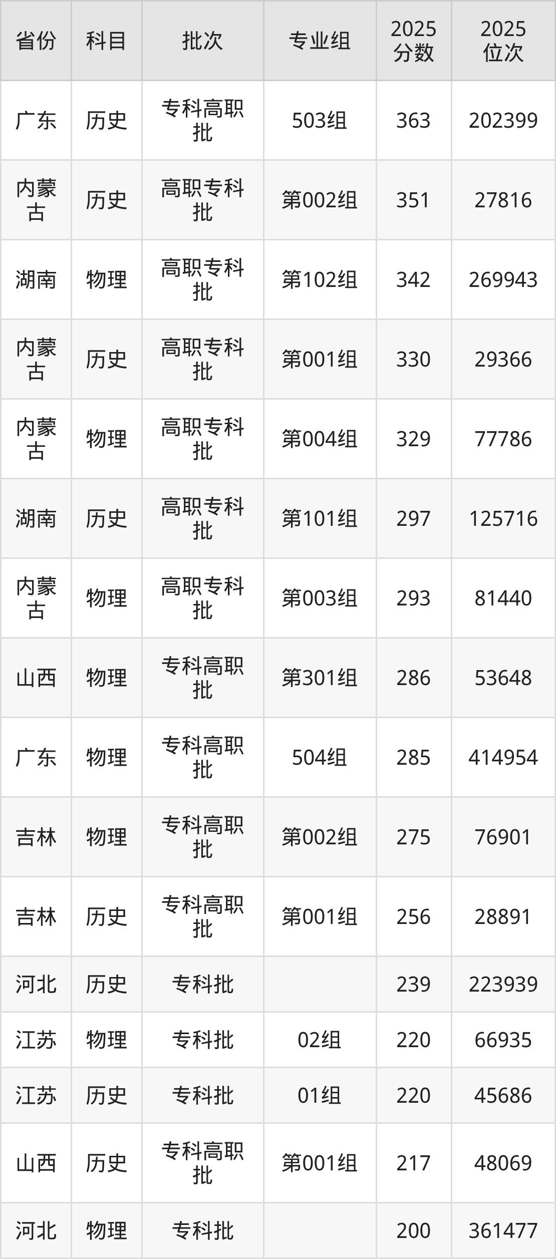 下面是2025年石家庄理工职业学院在全国各省录取最低分数据及位次,各位考生也可作为一个参考。