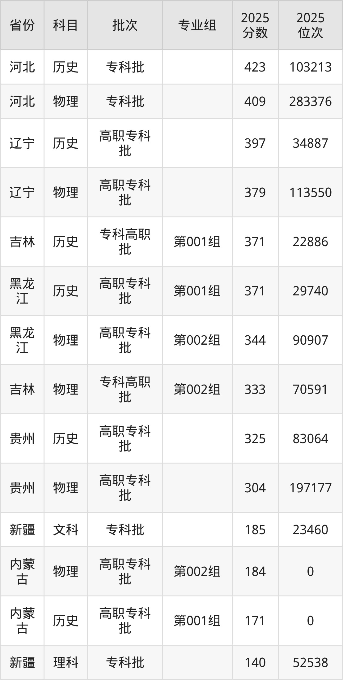 下面是2025年通辽职业学院在全国各省录取最低分数据及位次,各位考生也可作为一个参考。
