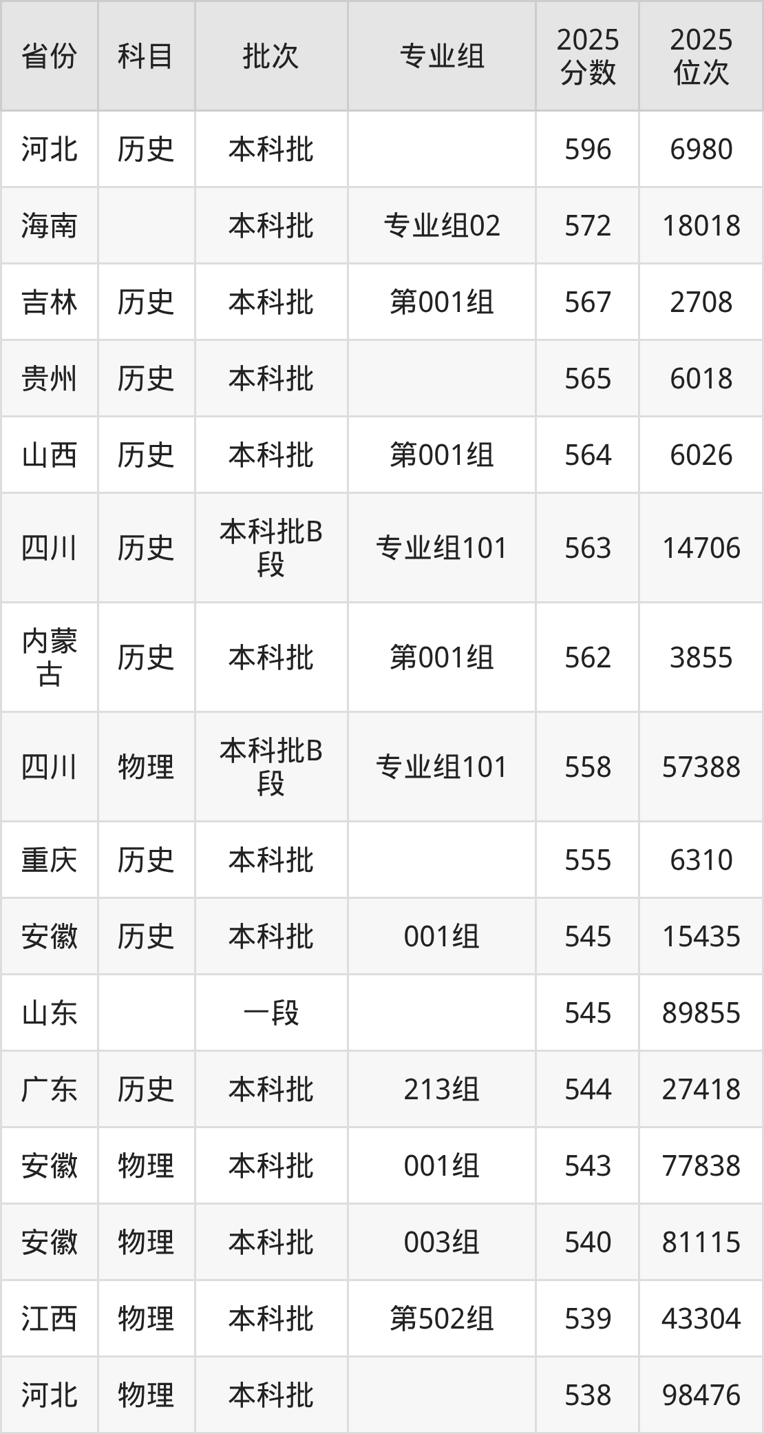 下面是2025年五邑大学在全国各省录取最低分数据及位次,各位考生也可作为一个参考。