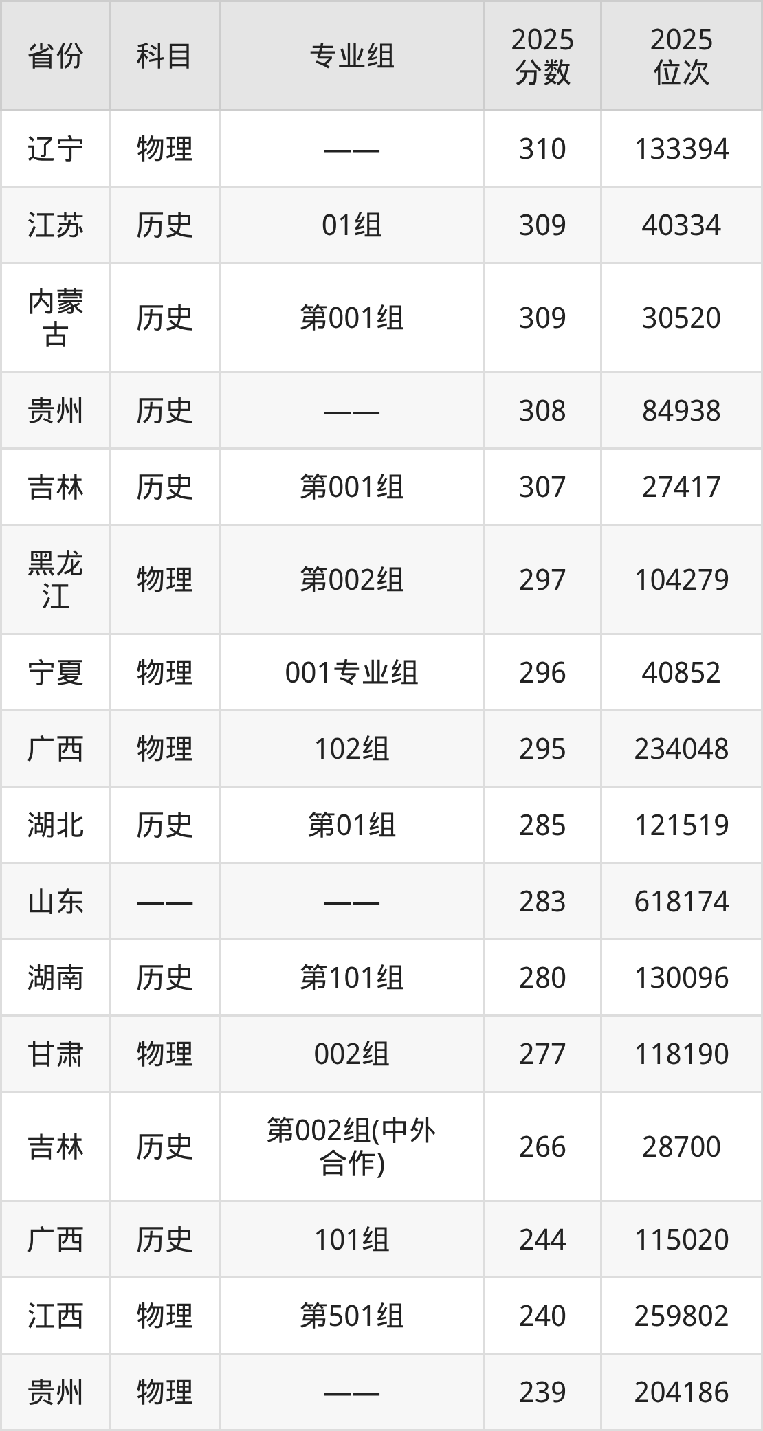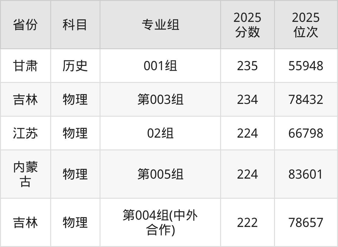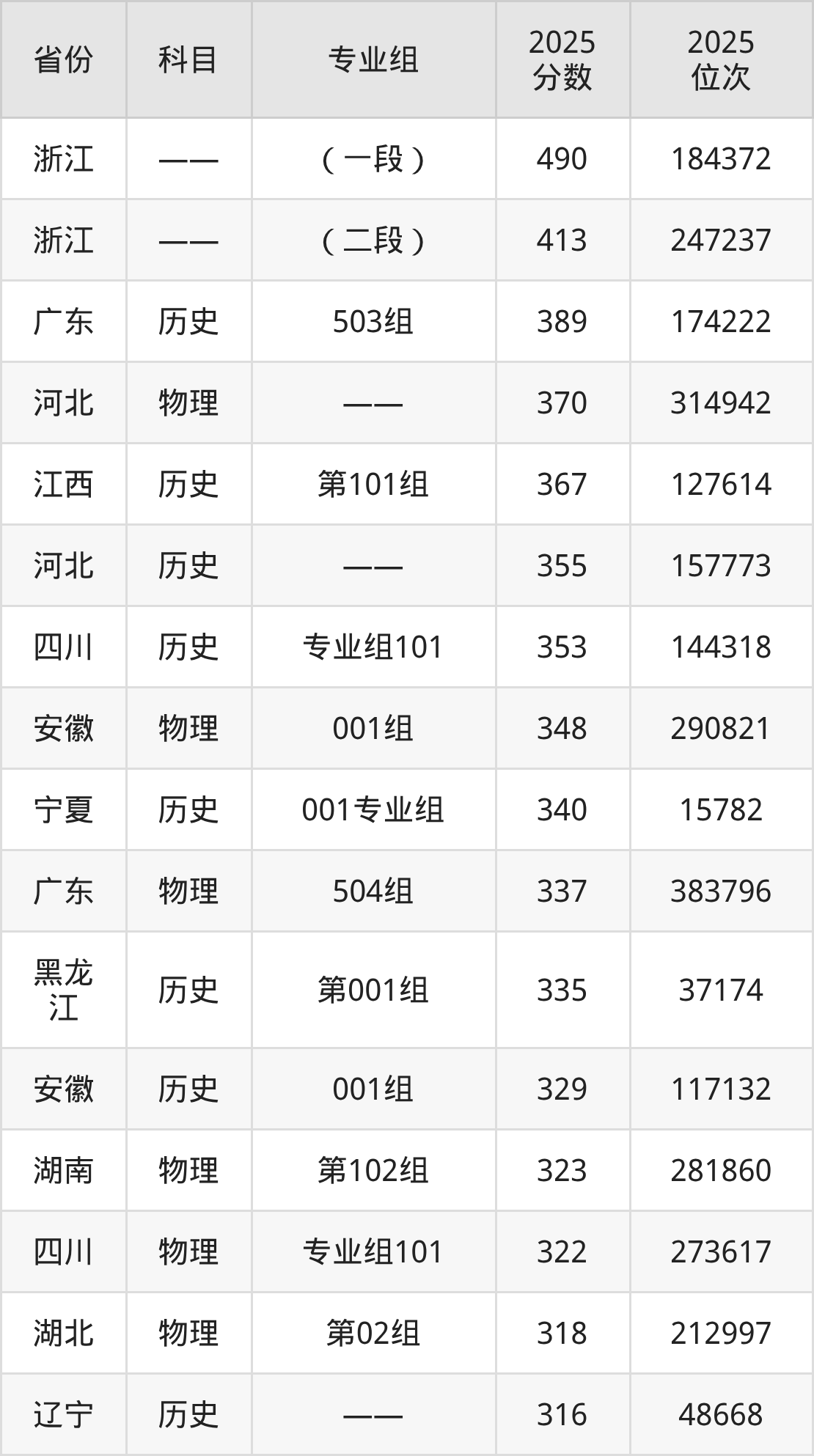 2025年枣庄科技职业学院全国录取分数线222分到490分,录取最高在浙江、录取最低在吉林(物理类第004组(中外合作))。