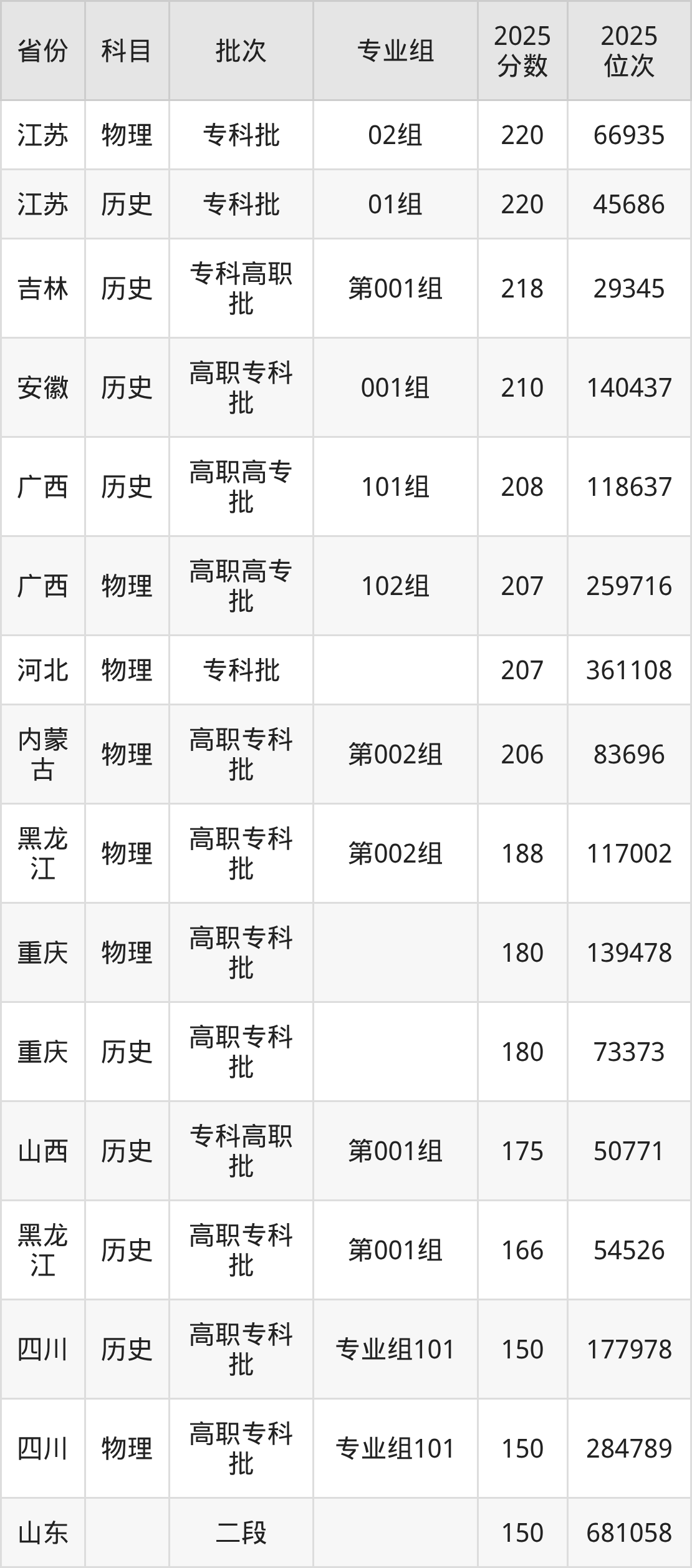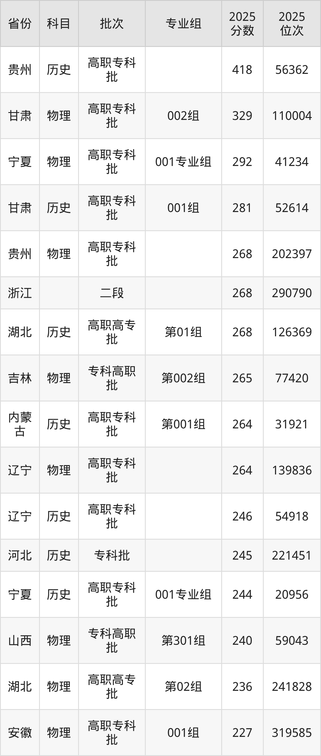 下面是2025年烟台黄金职业学院在全国各省录取最低分数据及位次,各位考生也可作为一个参考。
