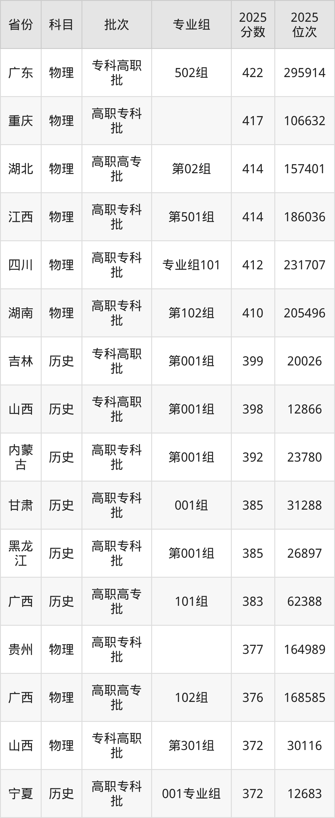 下面是2025年上海城建职业学院在全国各省录取最低分数据及位次,各位考生也可作为一个参考。