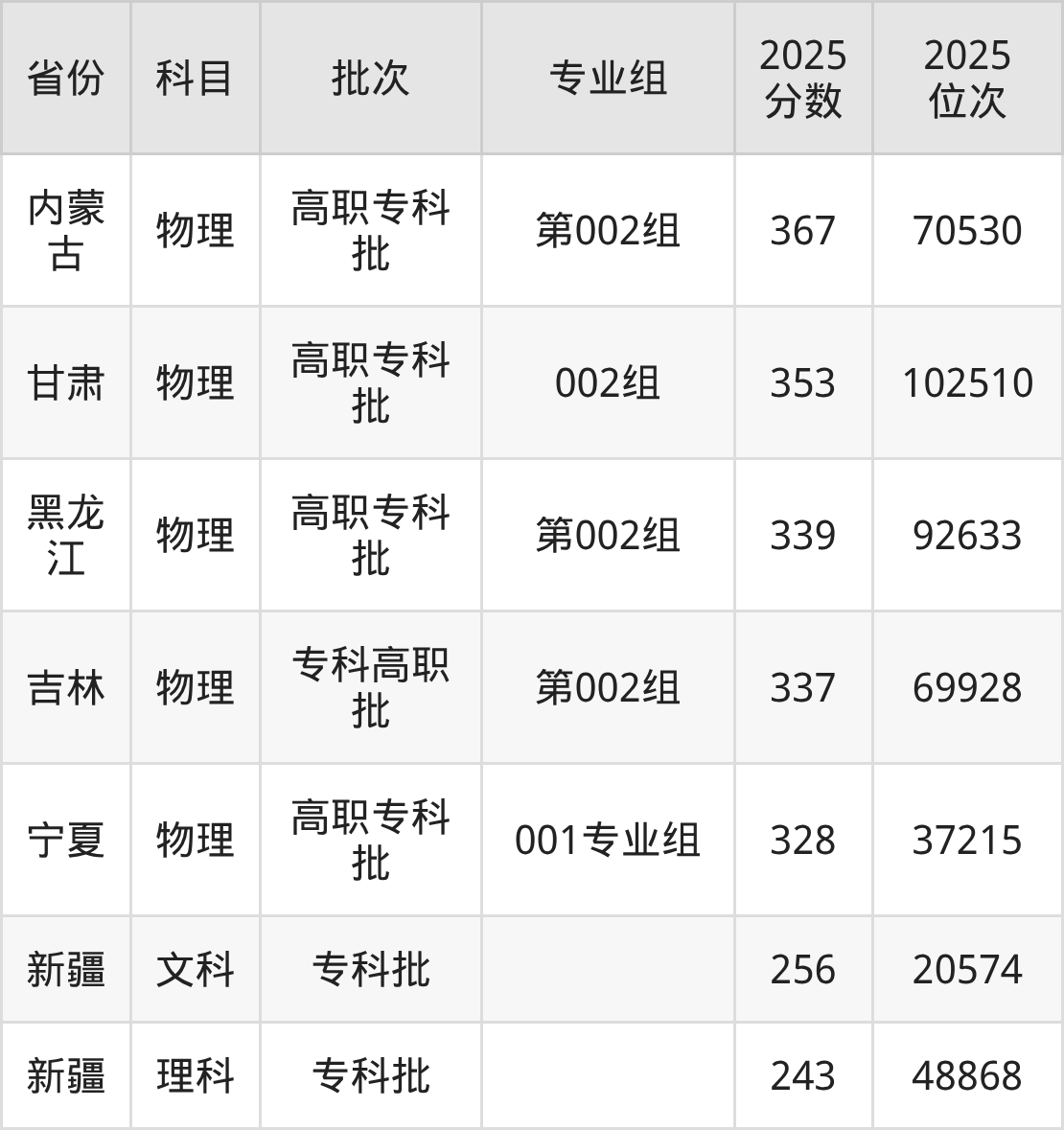 2025年上海城建职业学院全国录取分数线243分到490分,录取最高在浙江、录取最低在新疆(理科)。