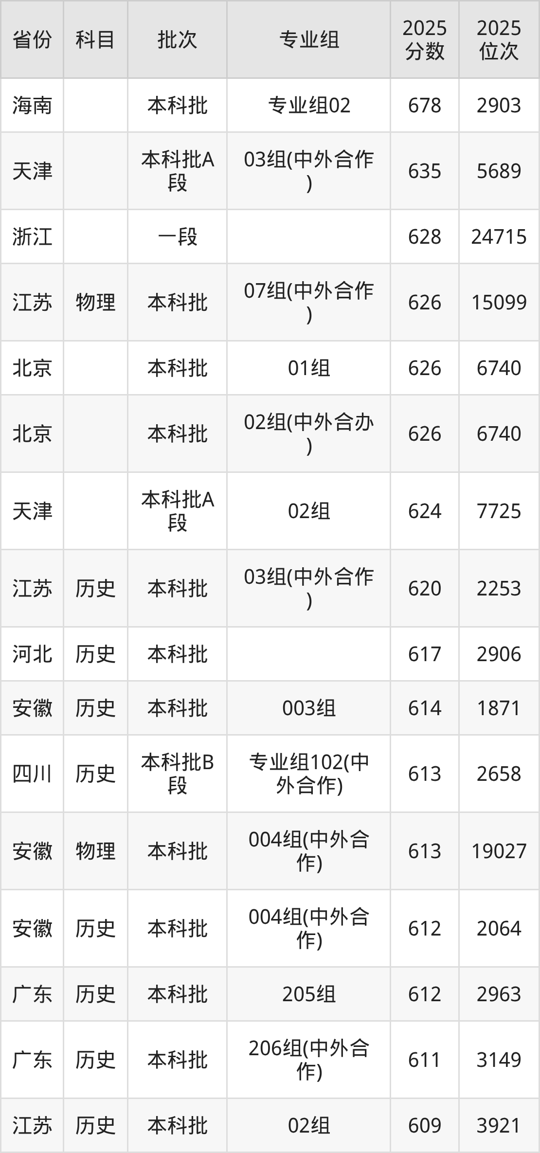 10、法学(中外合作办学)(与英国考文垂大学合作项目):612分、位次17214名;