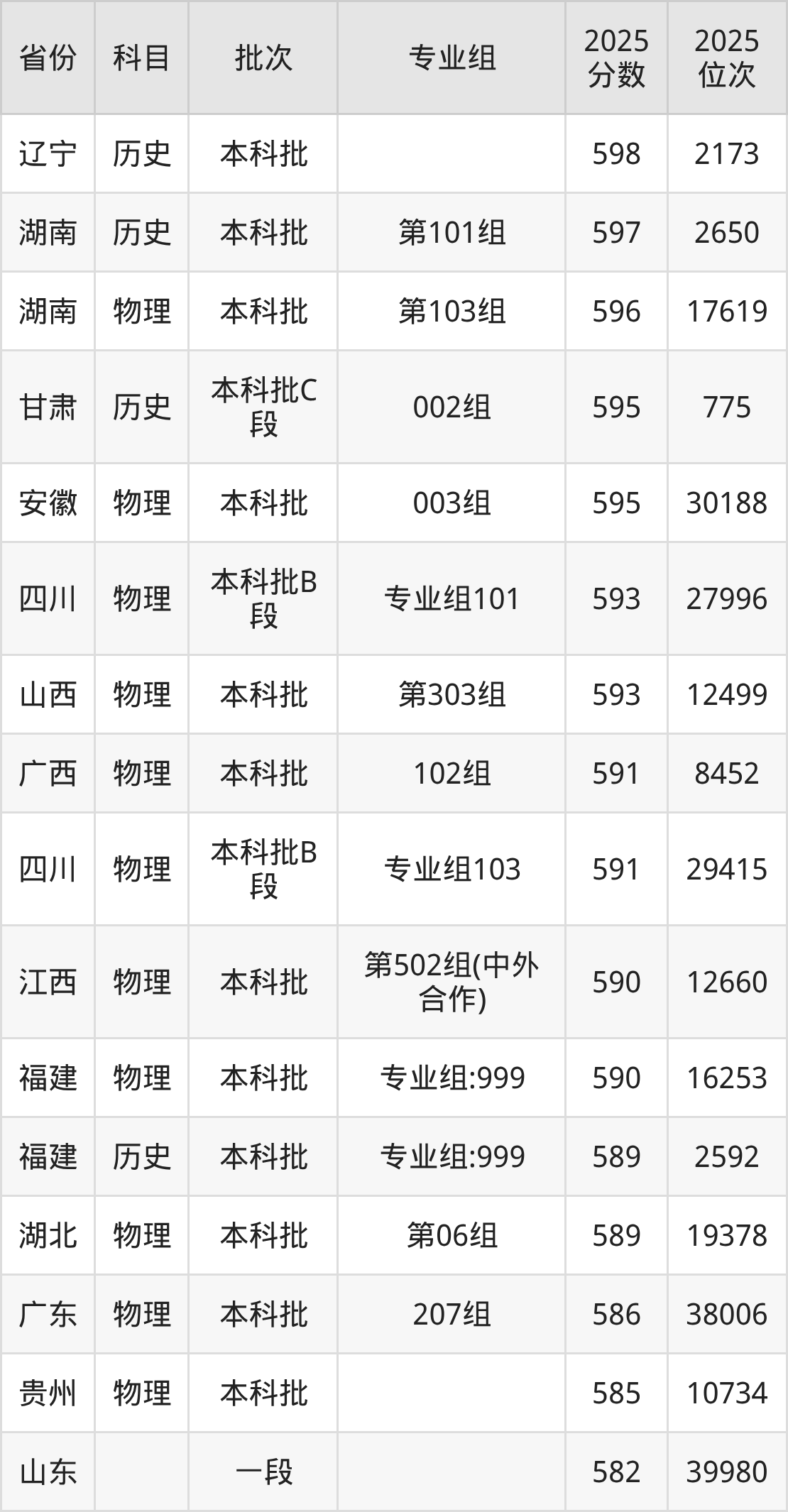下面是2025年西南政法大学在全国各省录取最低分数据及位次,各位考生也可作为一个参考。