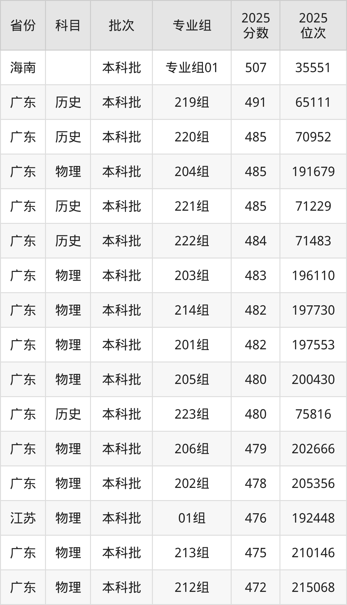 2025年广东东软学院全国录取分数线372分到507分,录取最高在海南(专业组01)、录取最低在广东(502组)。