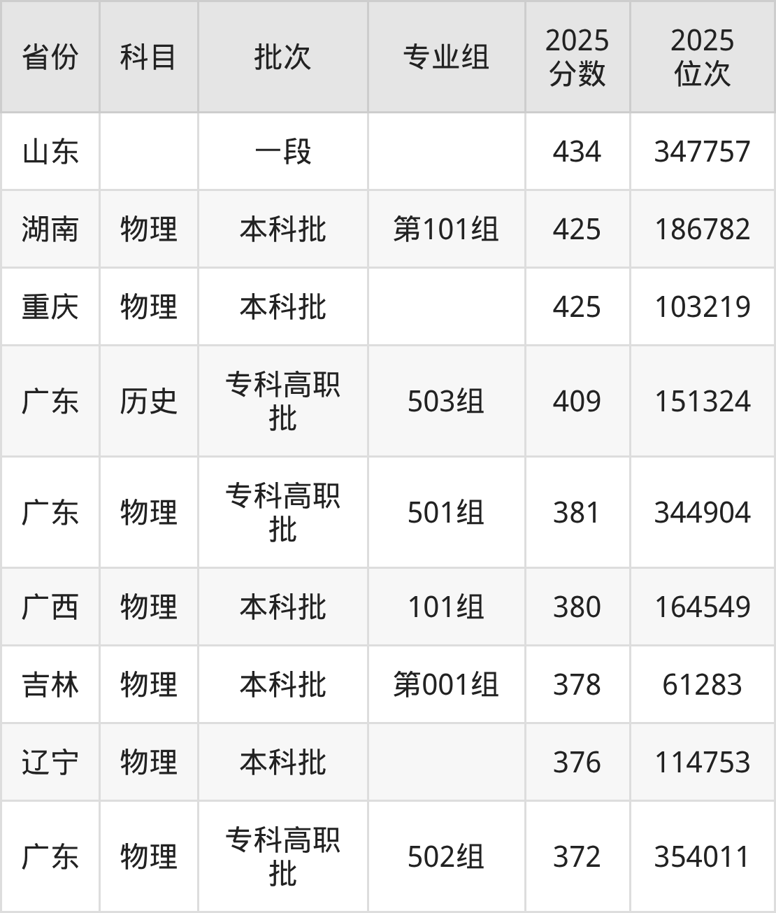 下面是2025年广东东软学院在全国各省录取最低分数据及位次,各位考生也可作为一个参考。