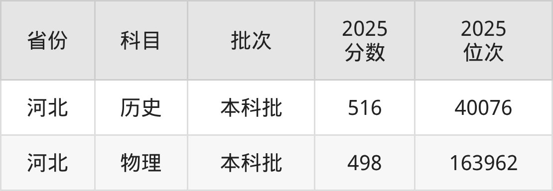 2025年河北体育学院全国录取分数线498分到516分,录取最高在河北(历史)、录取最低在河北(物理)。