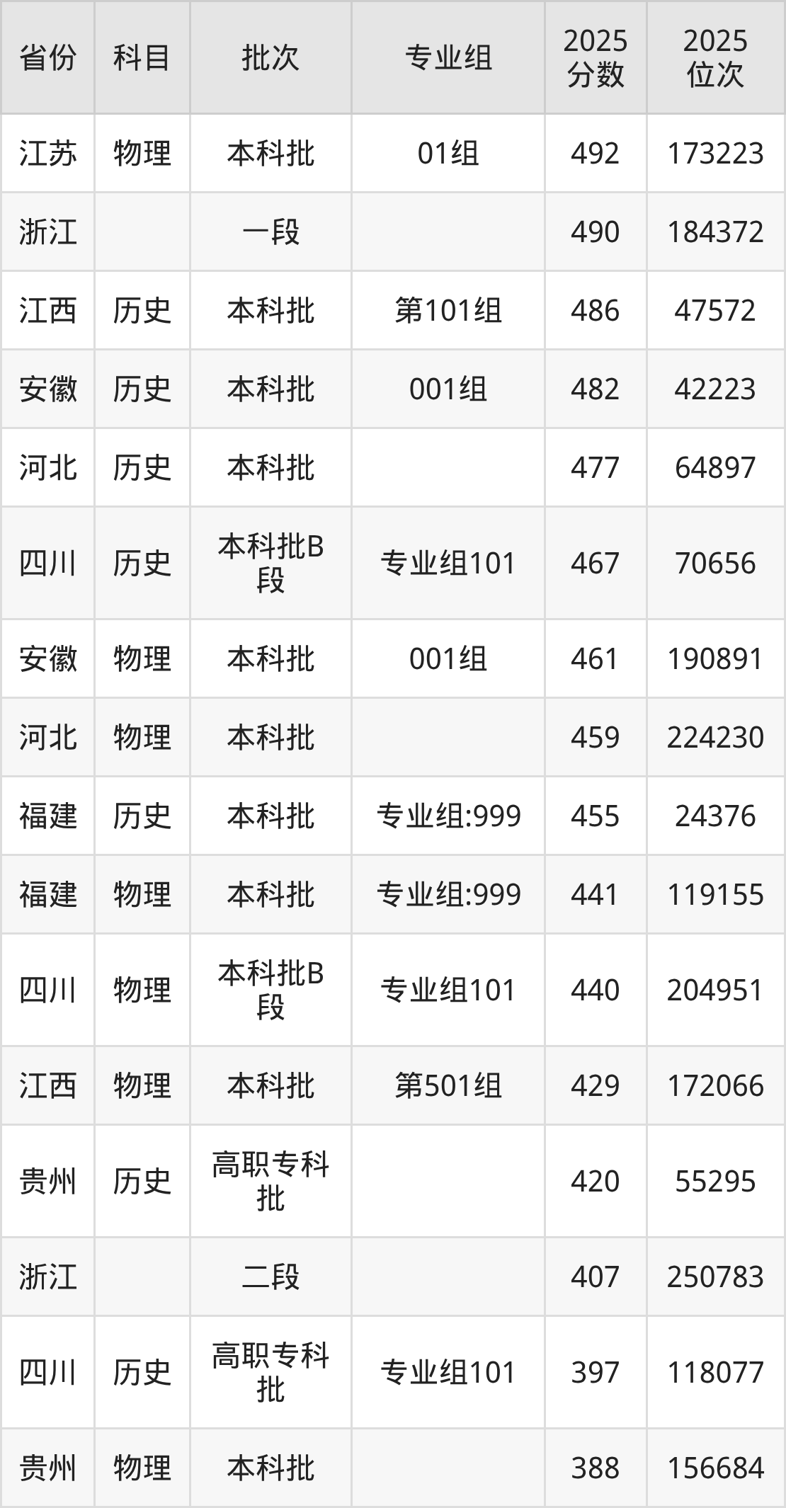 2025年浙江广厦建设职业技术大学全国录取分数线283分到492分,录取最高在江苏(01组)、录取最低在广西(101组)。