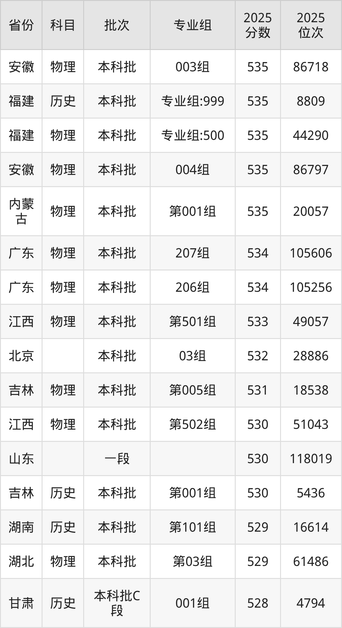 参考2025年山东省高考招录数据,按照分数线从高到低依次为大家展示中国劳动关系学院各个专业录取分数线。