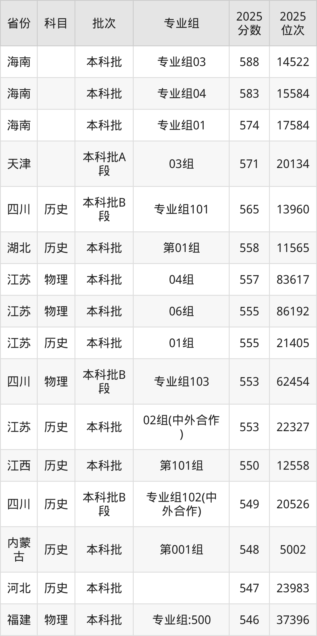2025年山西财经大学全国录取分数线390分到588分,录取最高在海南(专业组03)、录取最低在新疆(理科)。