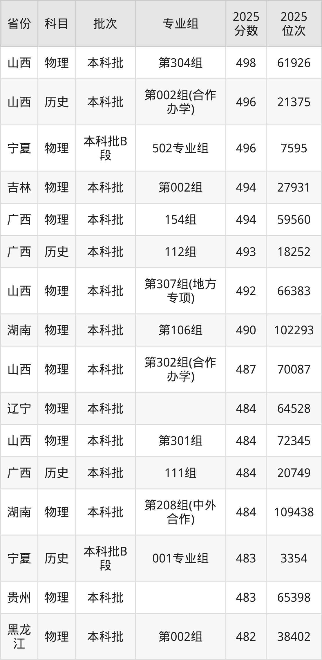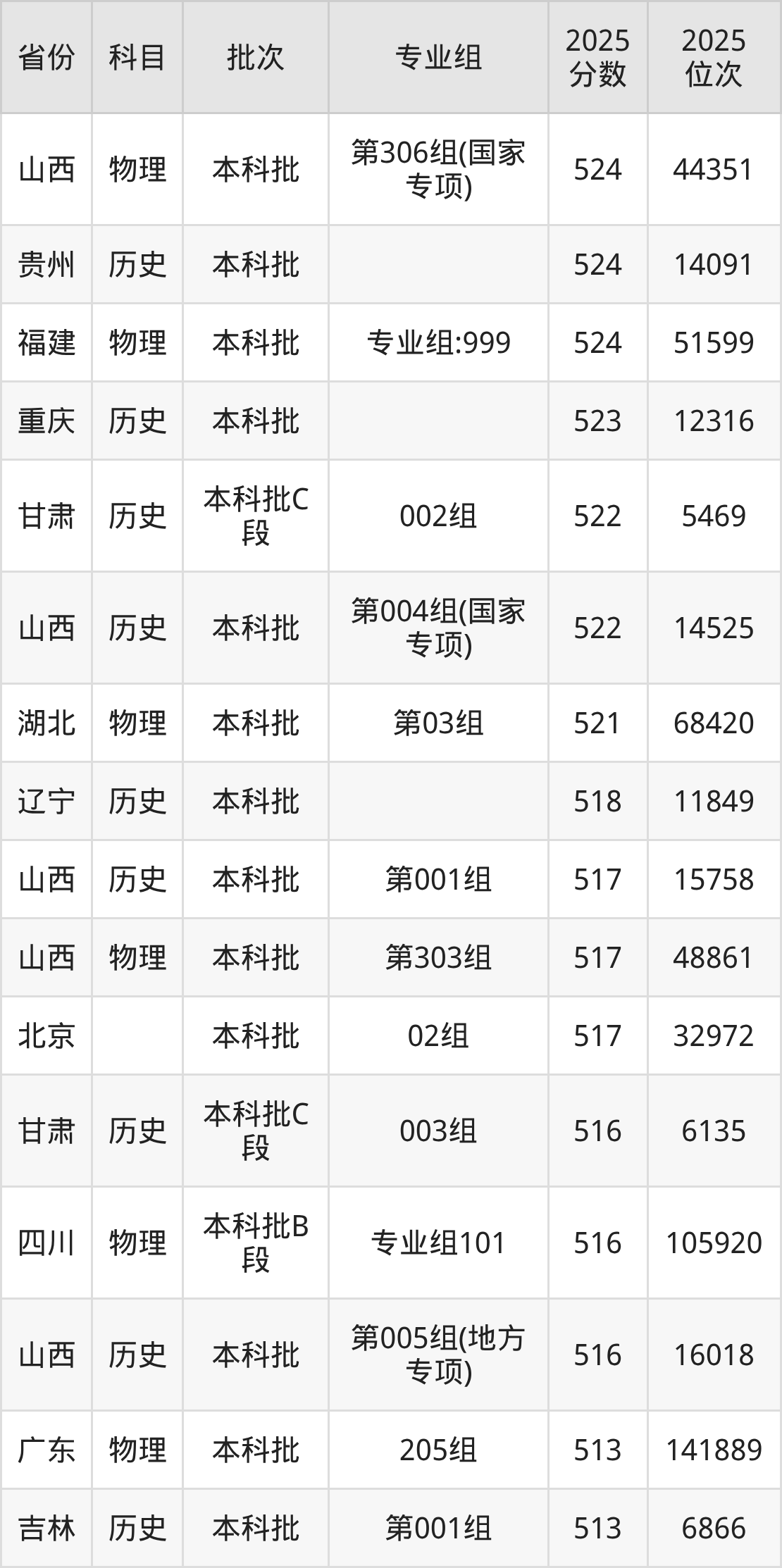 下面是2025年山西财经大学在全国各省录取最低分数据及位次,各位考生也可作为一个参考。