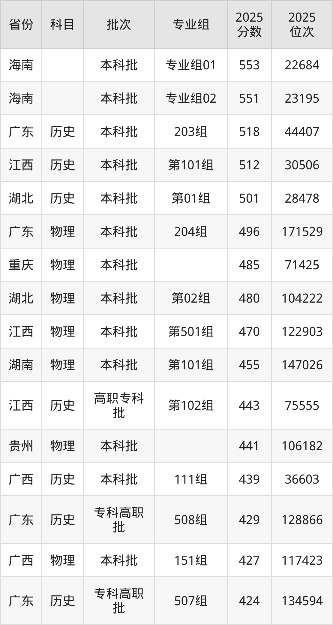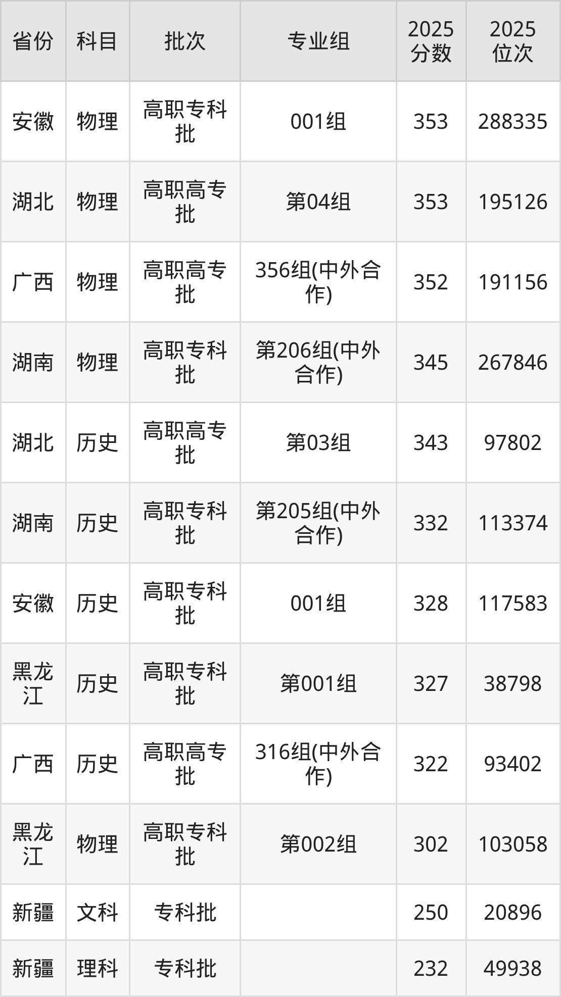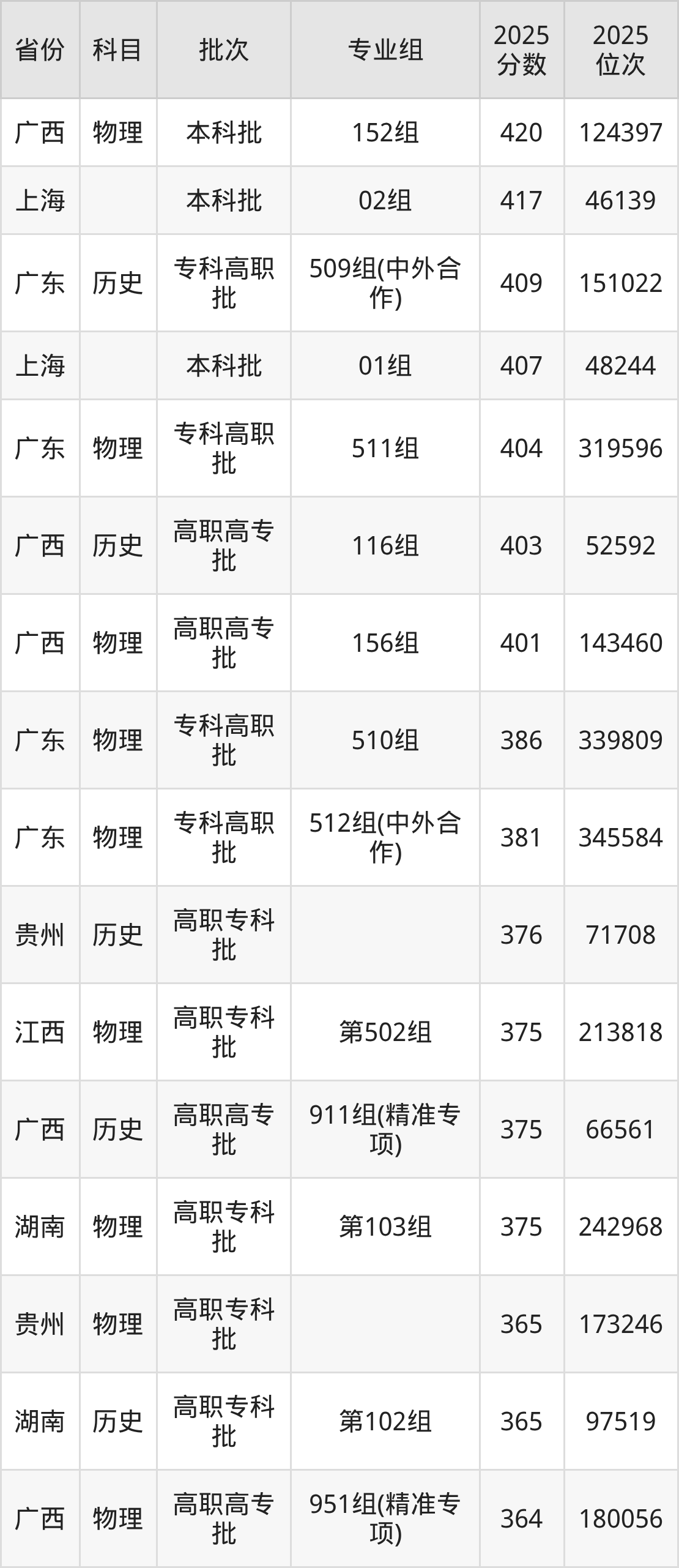 下面是2025年柳州职业技术大学在全国各省录取最低分数据及位次,各位考生也可作为一个参考。