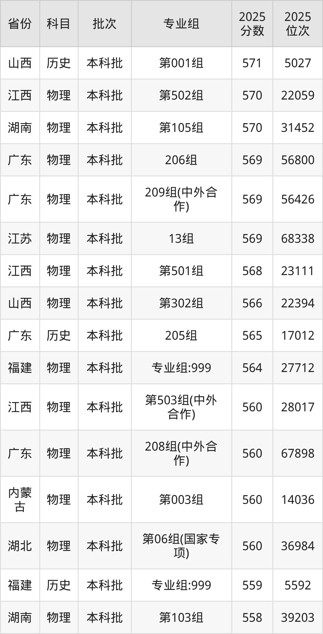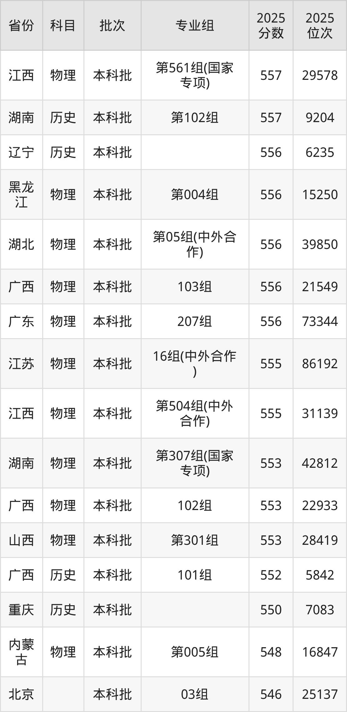 41、材料科学与工程(中外合作办学):558分、位次69373名;