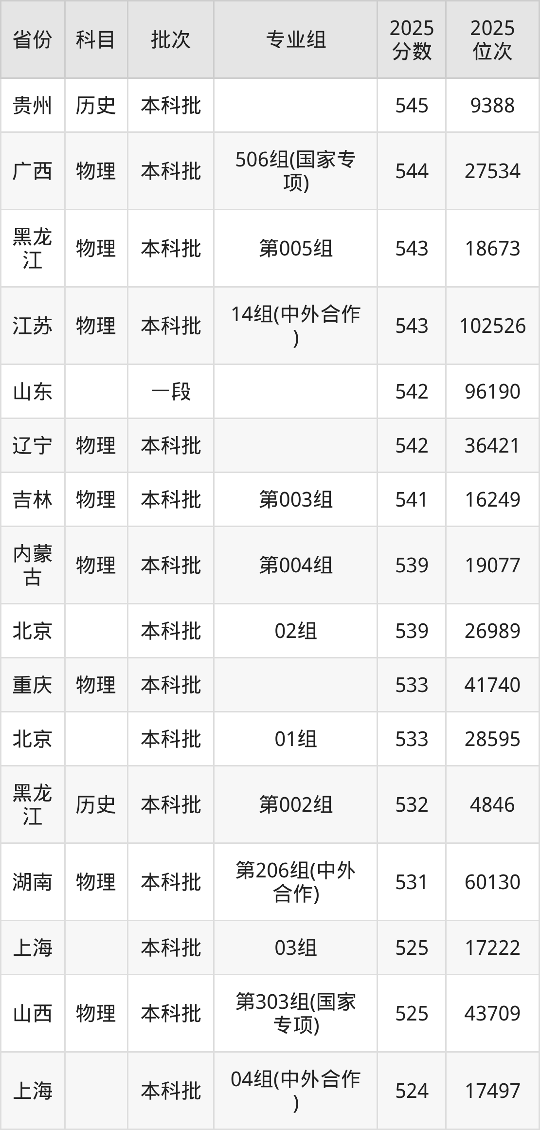 参考2025年山东省高考招录数据,按照分数线从高到低依次为大家展示南京工业大学各个专业录取分数线。