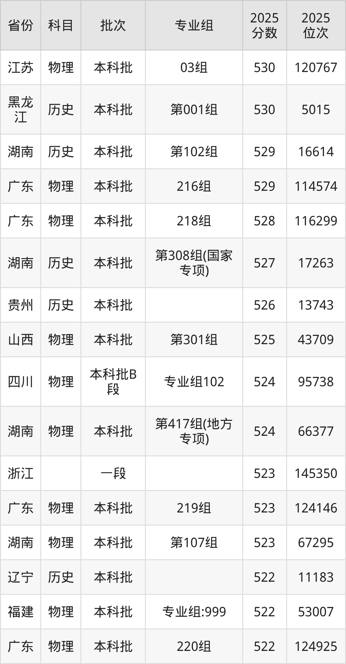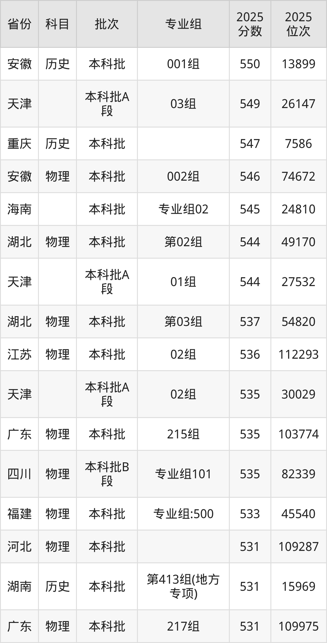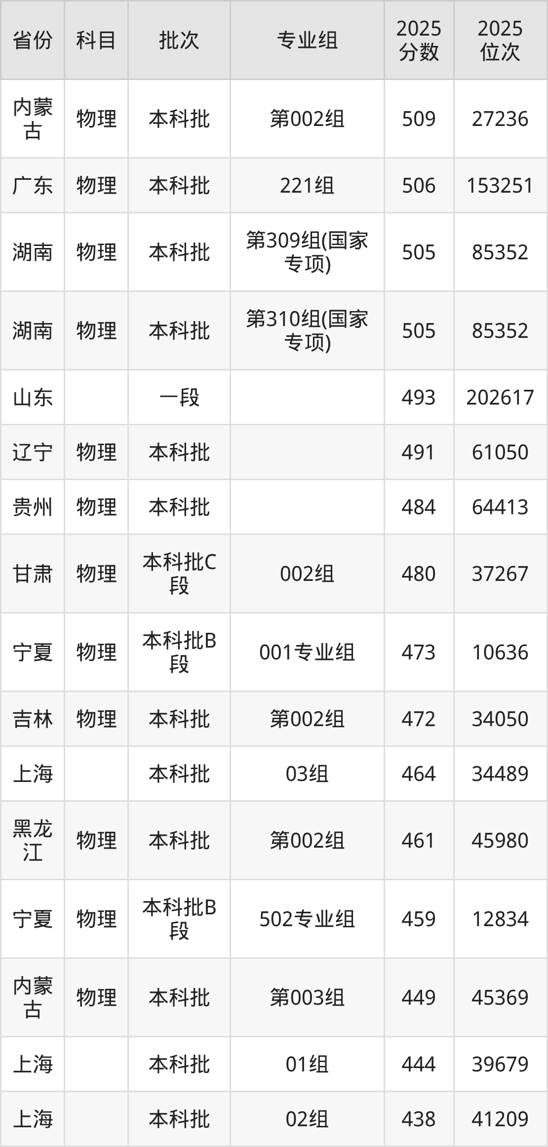 参考2025年山东省高考招录数据,按照分数线从高到低依次为大家展示南华大学各个专业录取分数线。