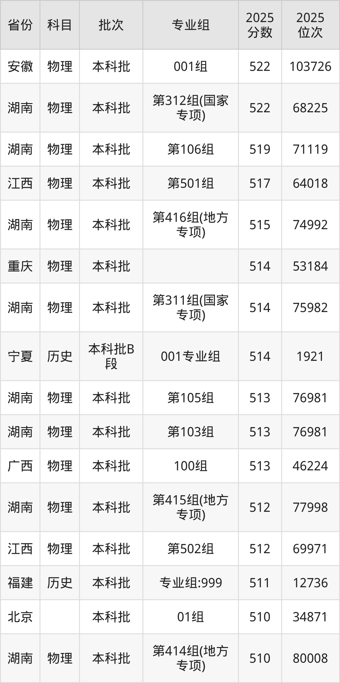 三、南华大学2025年录取分数线
