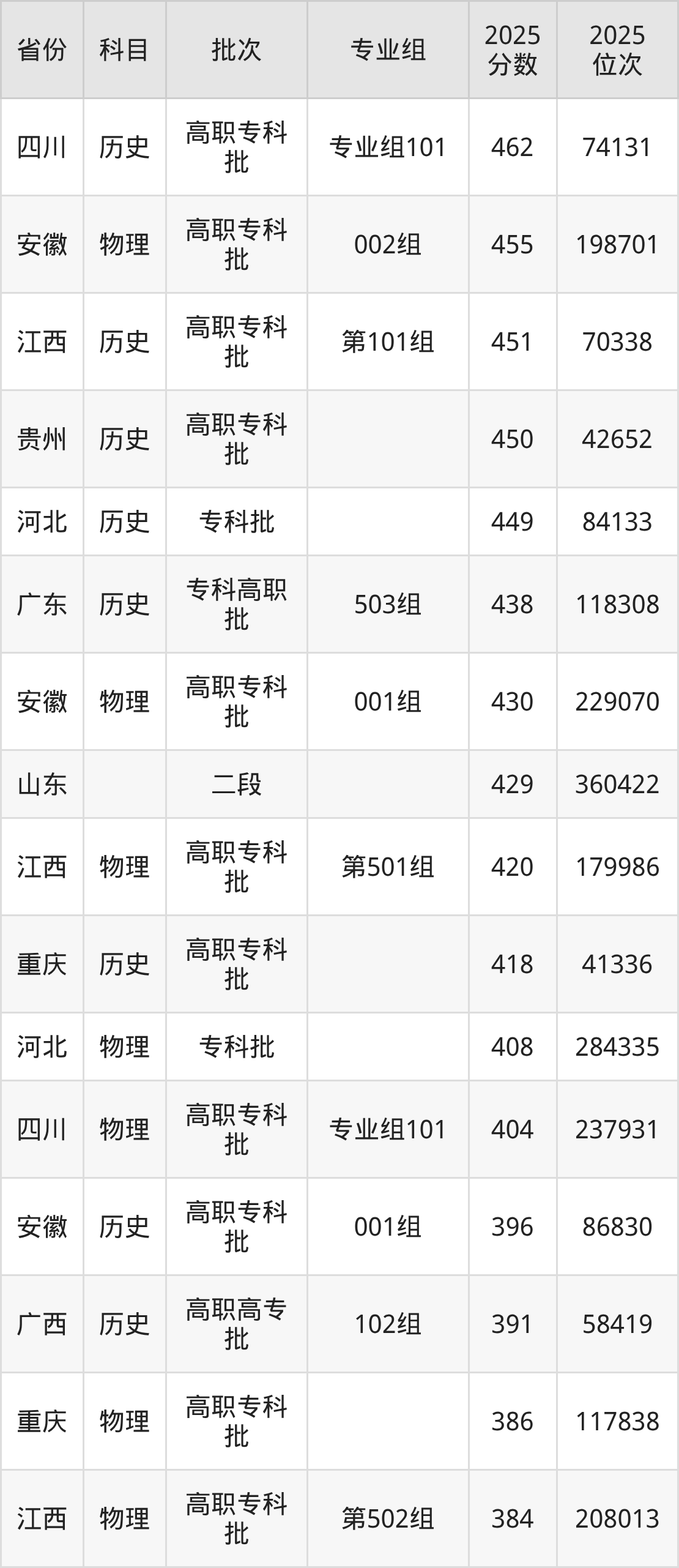 楚雄医药高等专科学校录取分数线普遍在430分及以上,最高分和最低分专业分数线相差23分、位次相差55180名。可见,对于有专业要求的同学而言,并不能简单参考学校的最低分,否则很容易被录取到不喜欢的专业。
