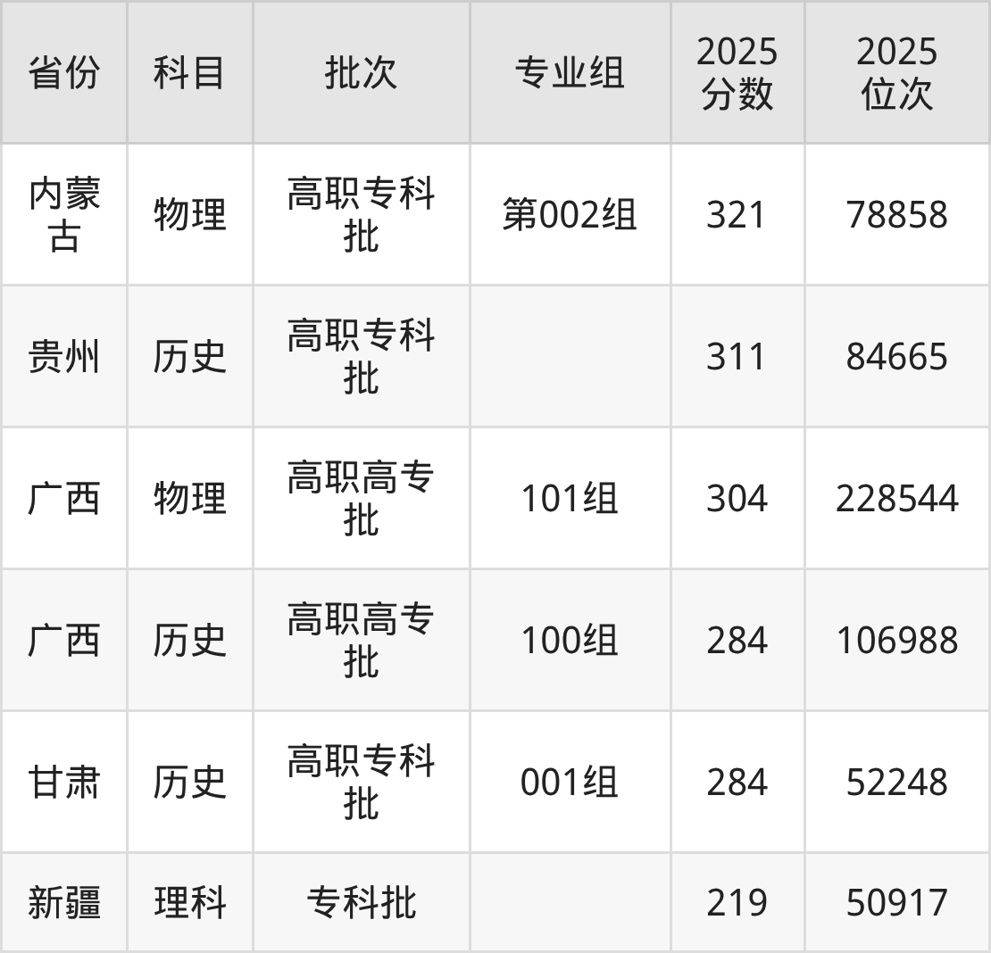 一、辽宁省交通高等专科学校2025年专业录取分数线
