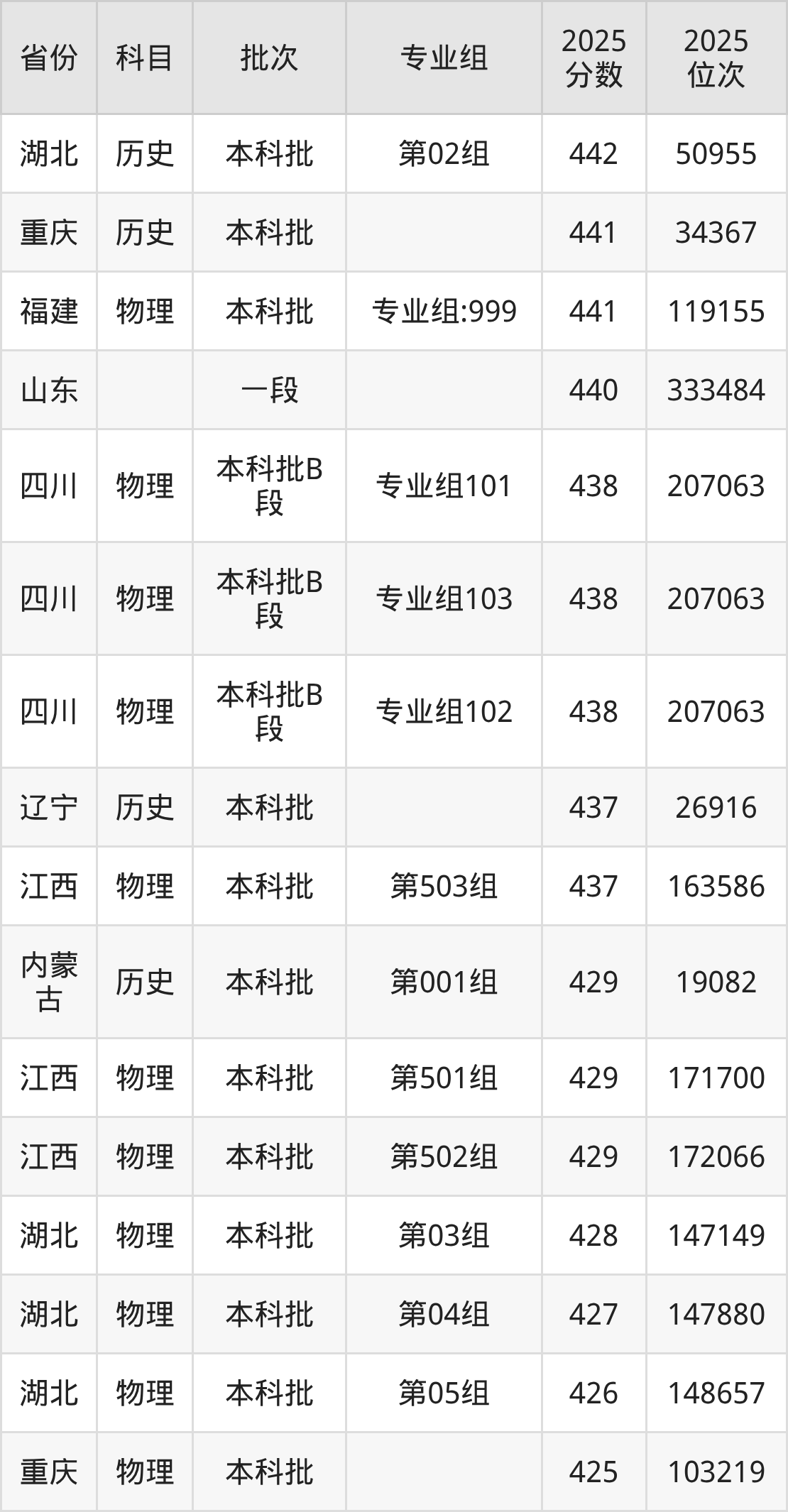 参考2025年山东省高考招录数据,按照分数线从高到低依次为大家展示湖南涉外经济学院各个专业录取分数线。