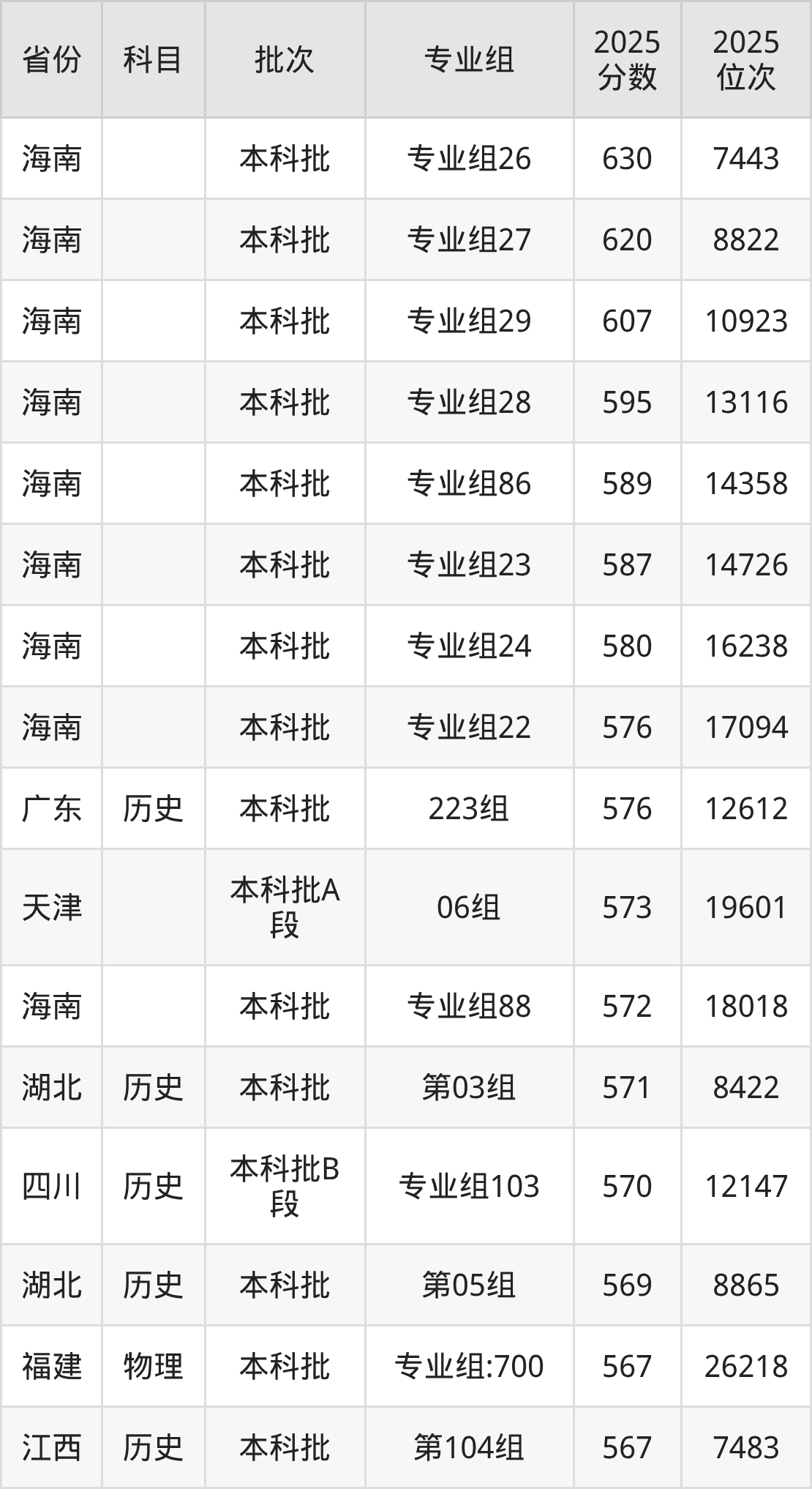 下面是2025年海南师范大学在全国各省录取最低分数据及位次,各位考生也可作为一个参考。