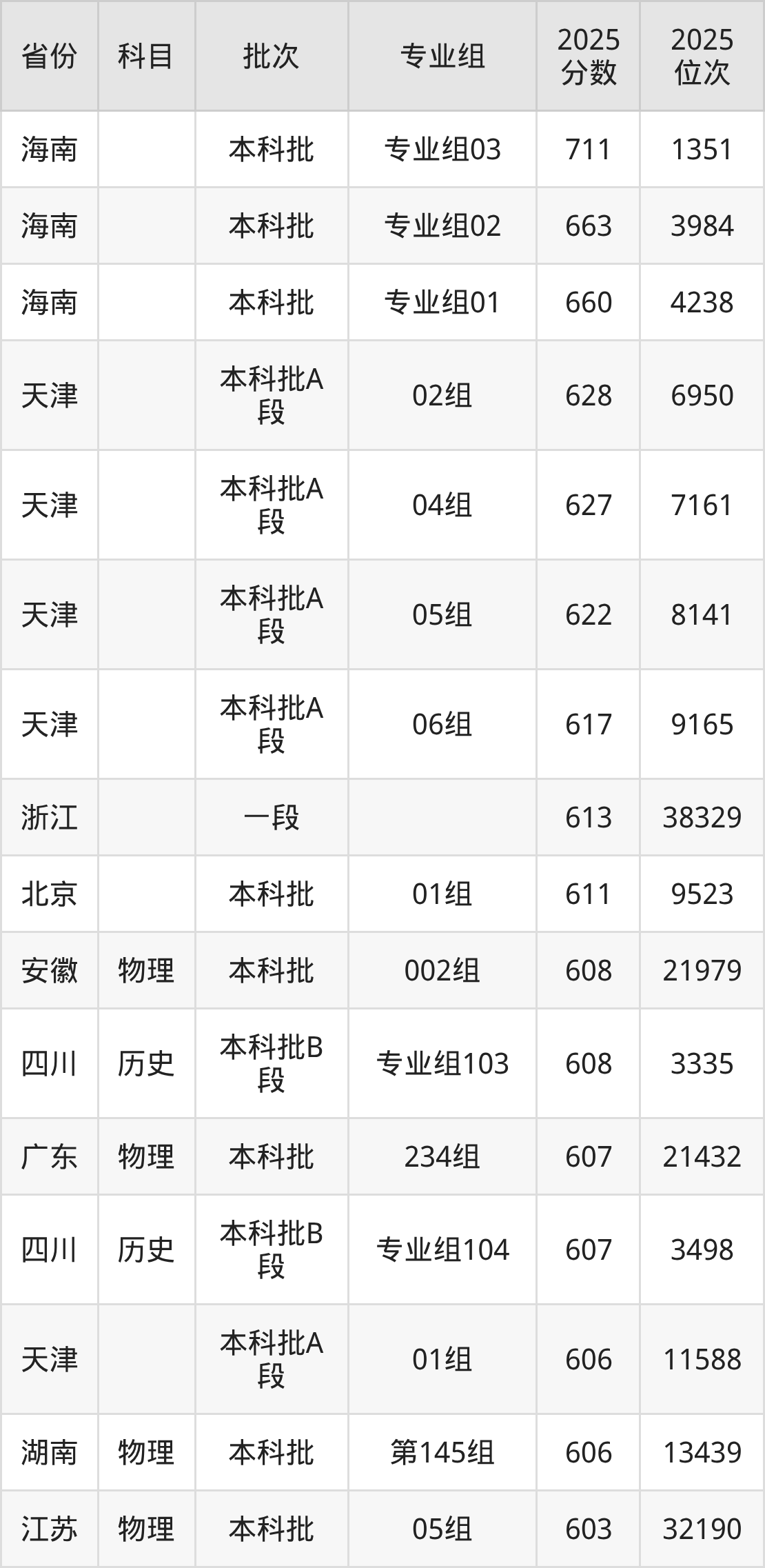 下面是2025年湖南师范大学在全国各省录取最低分数据及位次,各位考生也可作为一个参考。