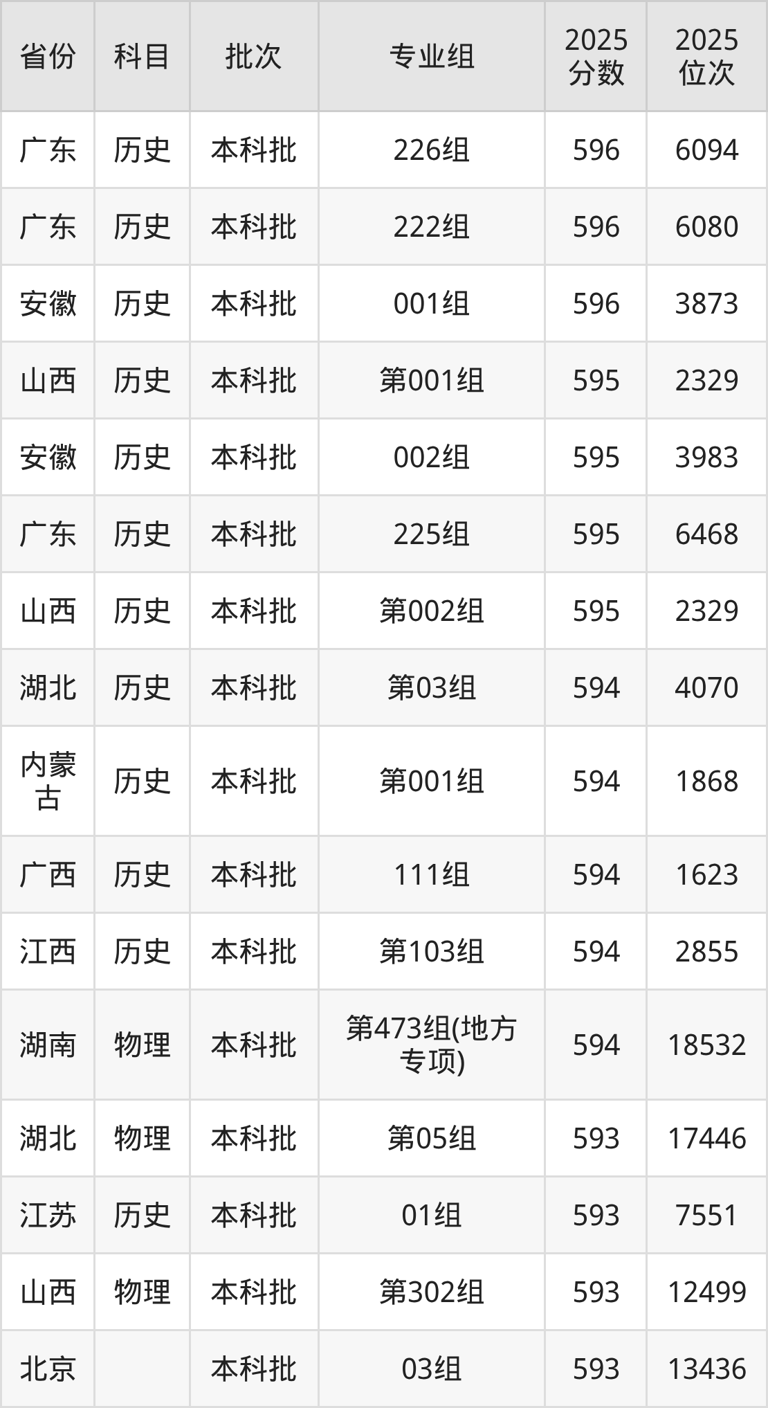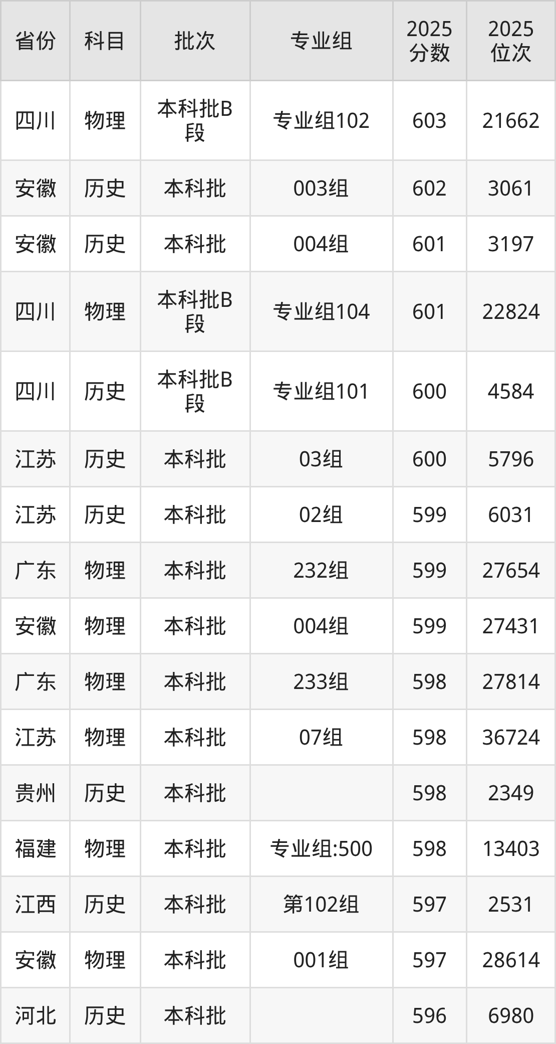 6、历史学:605分、位次21648名;