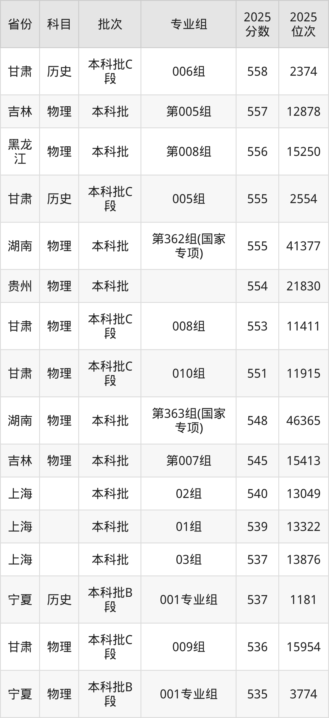 参考2025年山东省高考招录数据,按照分数线从高到低依次为大家展示湖南师范大学各个专业录取分数线。