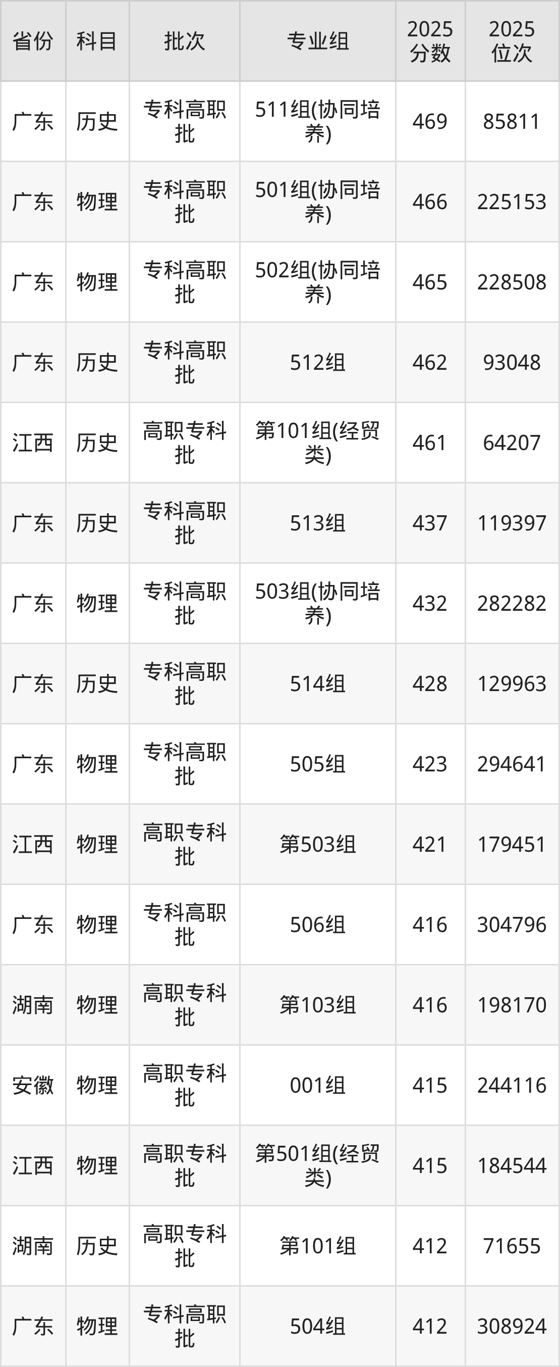 2025年中山职业技术学院全国录取分数线273分到469分,录取最高在广东(511组(协同培养))、录取最低在山西(第001组)。