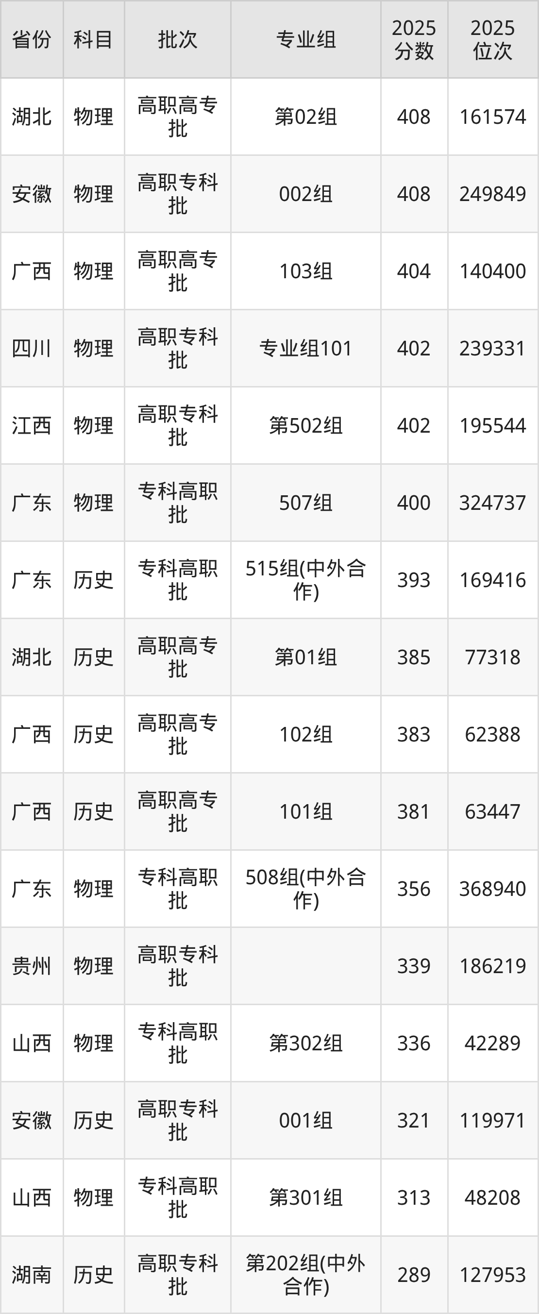 下面是2025年中山职业技术学院在全国各省录取最低分数据及位次,各位考生也可作为一个参考。