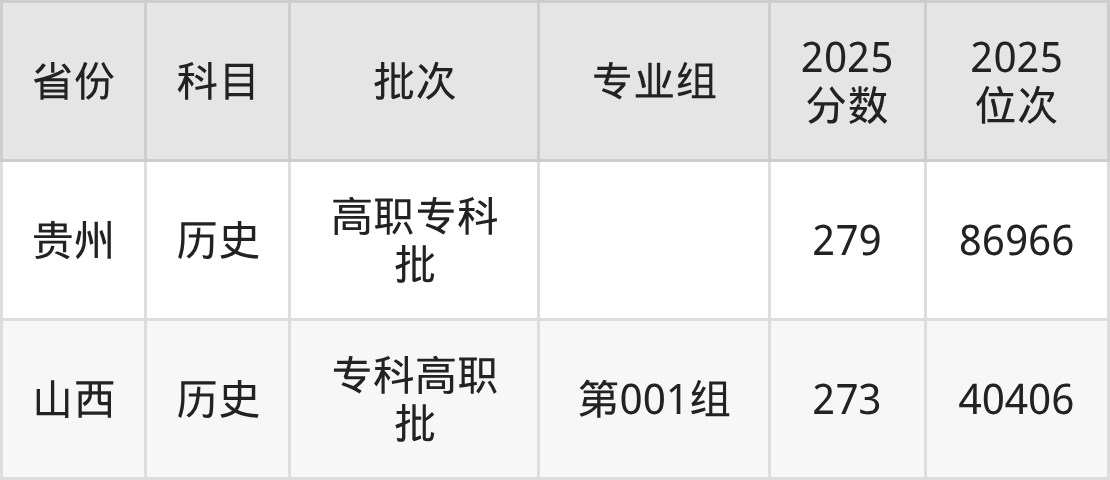 参考2025年贵州省高考招录数据,按照分数线从高到低依次为大家展示中山职业技术学院各个专业录取分数线。