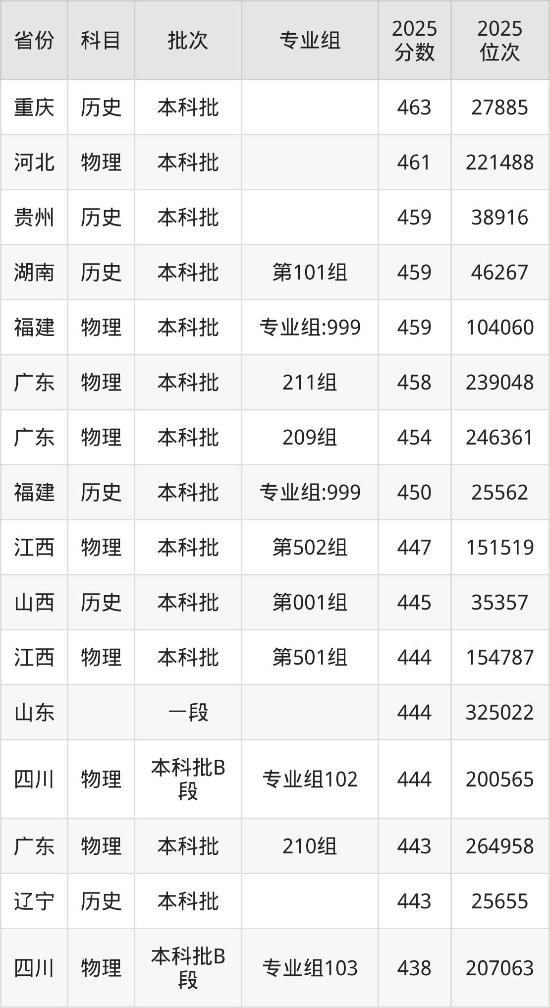 17、土木工程:444分、位次325022名。
