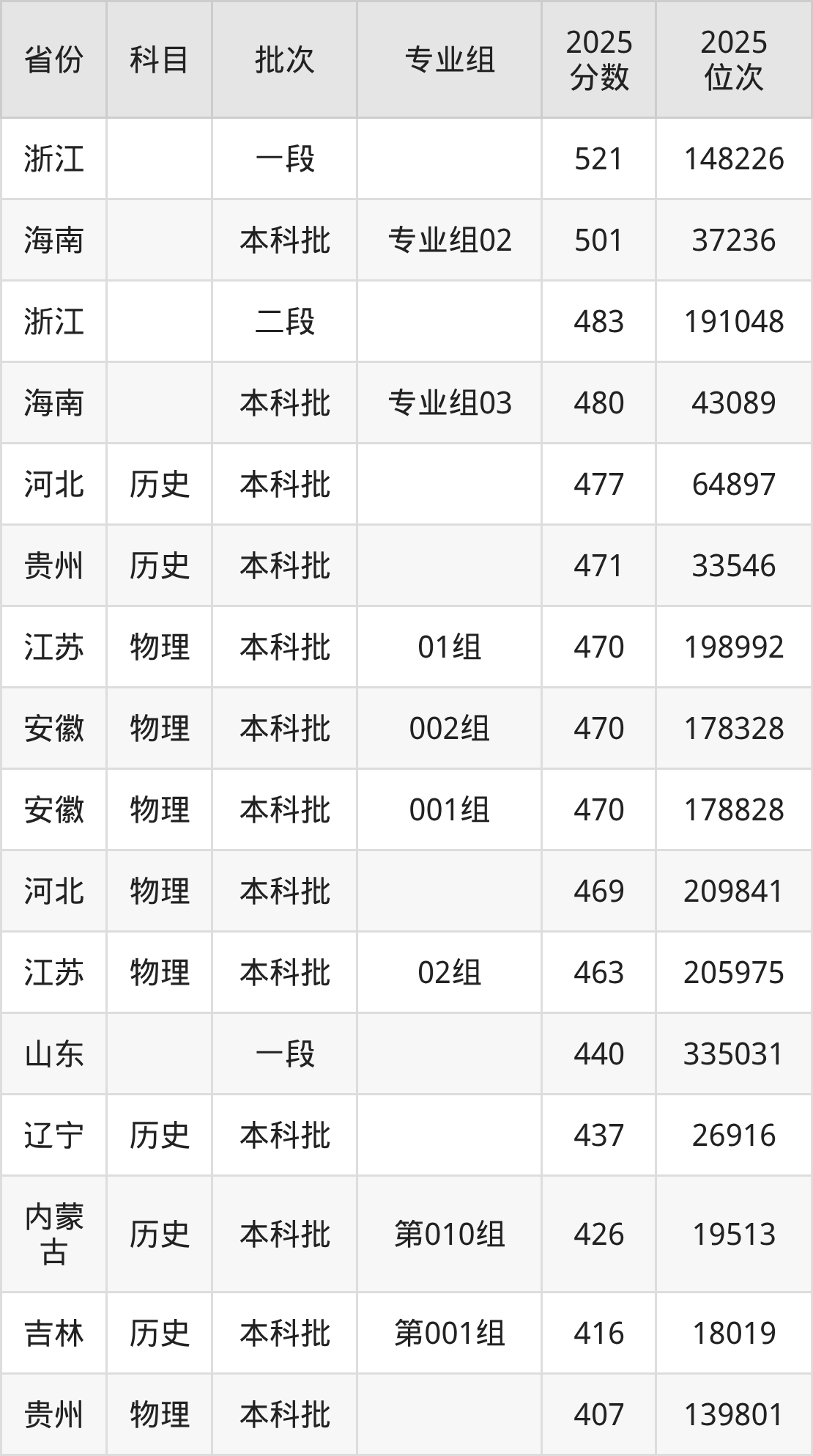 下面是2025年吉林动画学院在全国各省录取最低分数据及位次,各位考生也可作为一个参考。