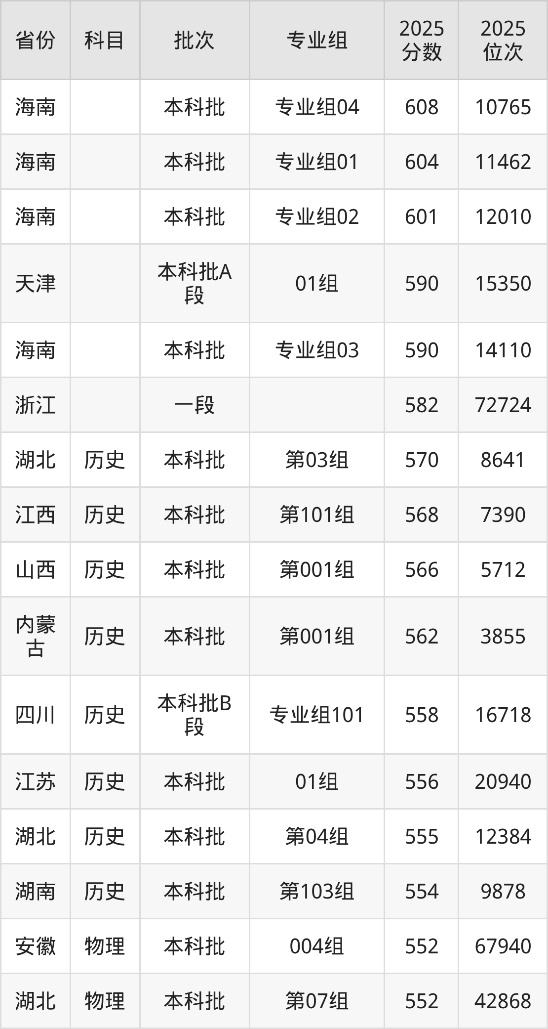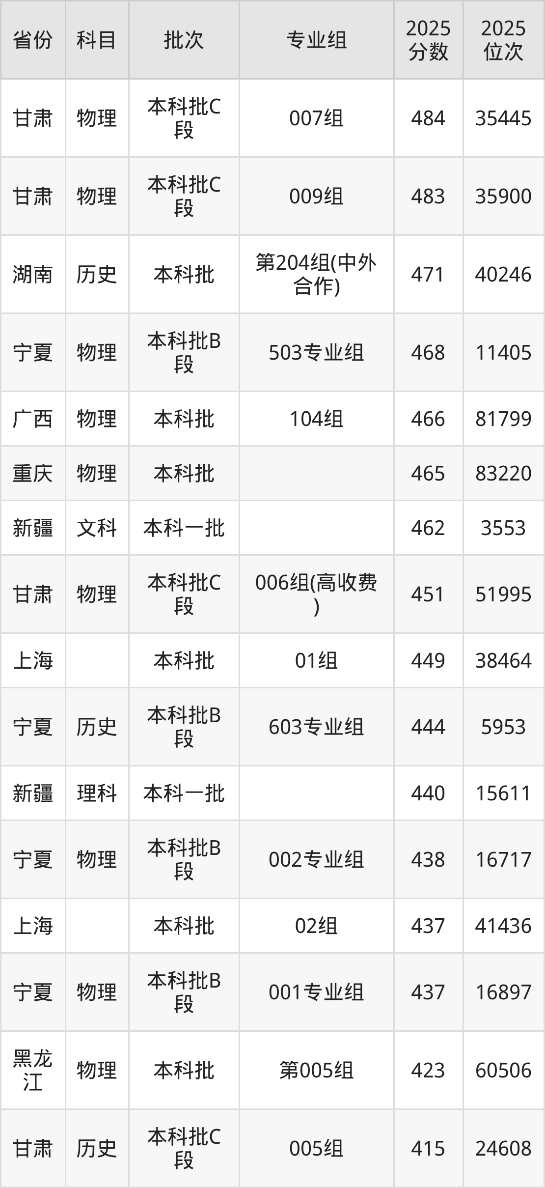 下面是2025年重庆工商大学在全国各省录取最低分数据及位次,各位考生也可作为一个参考。