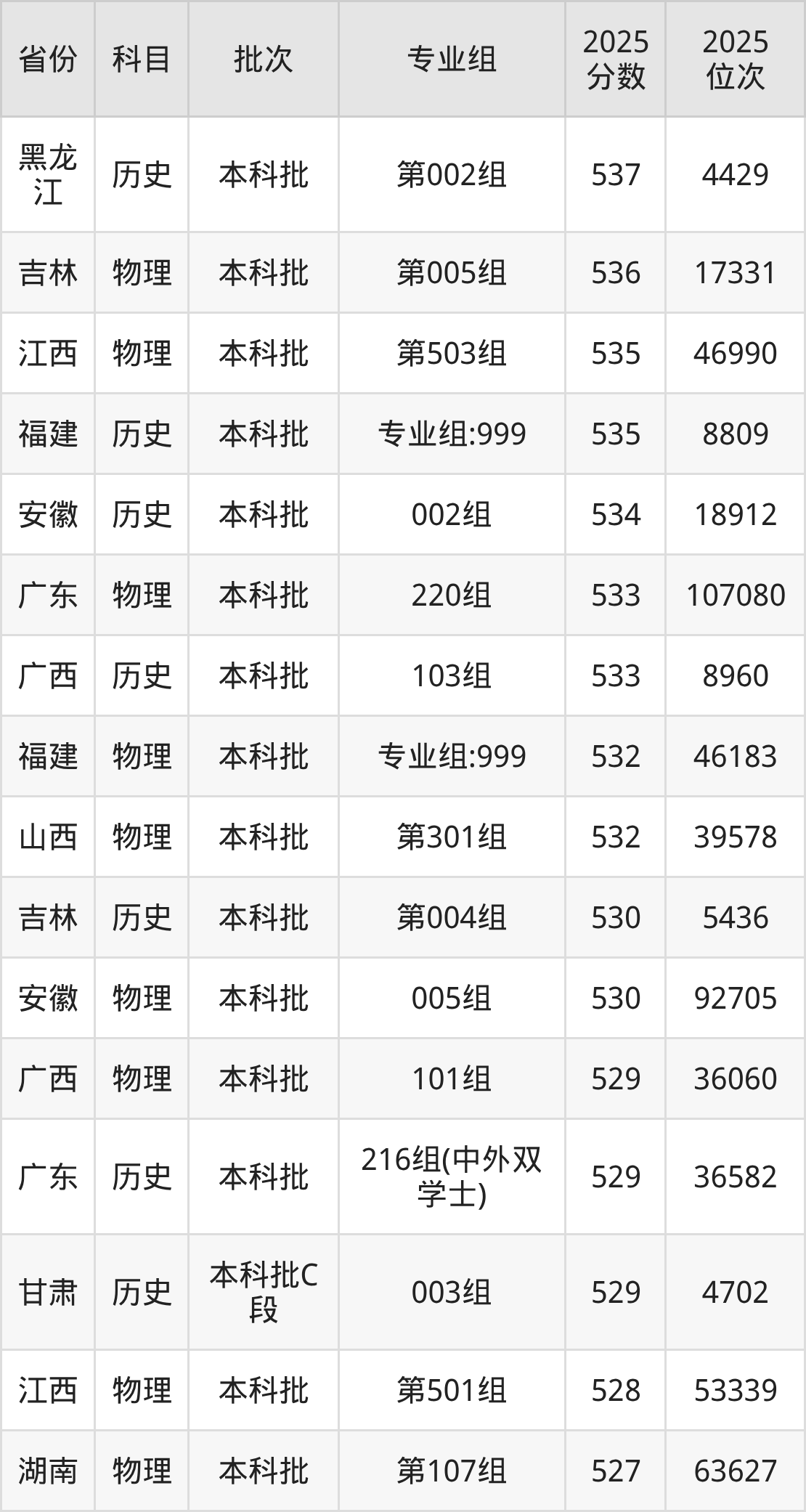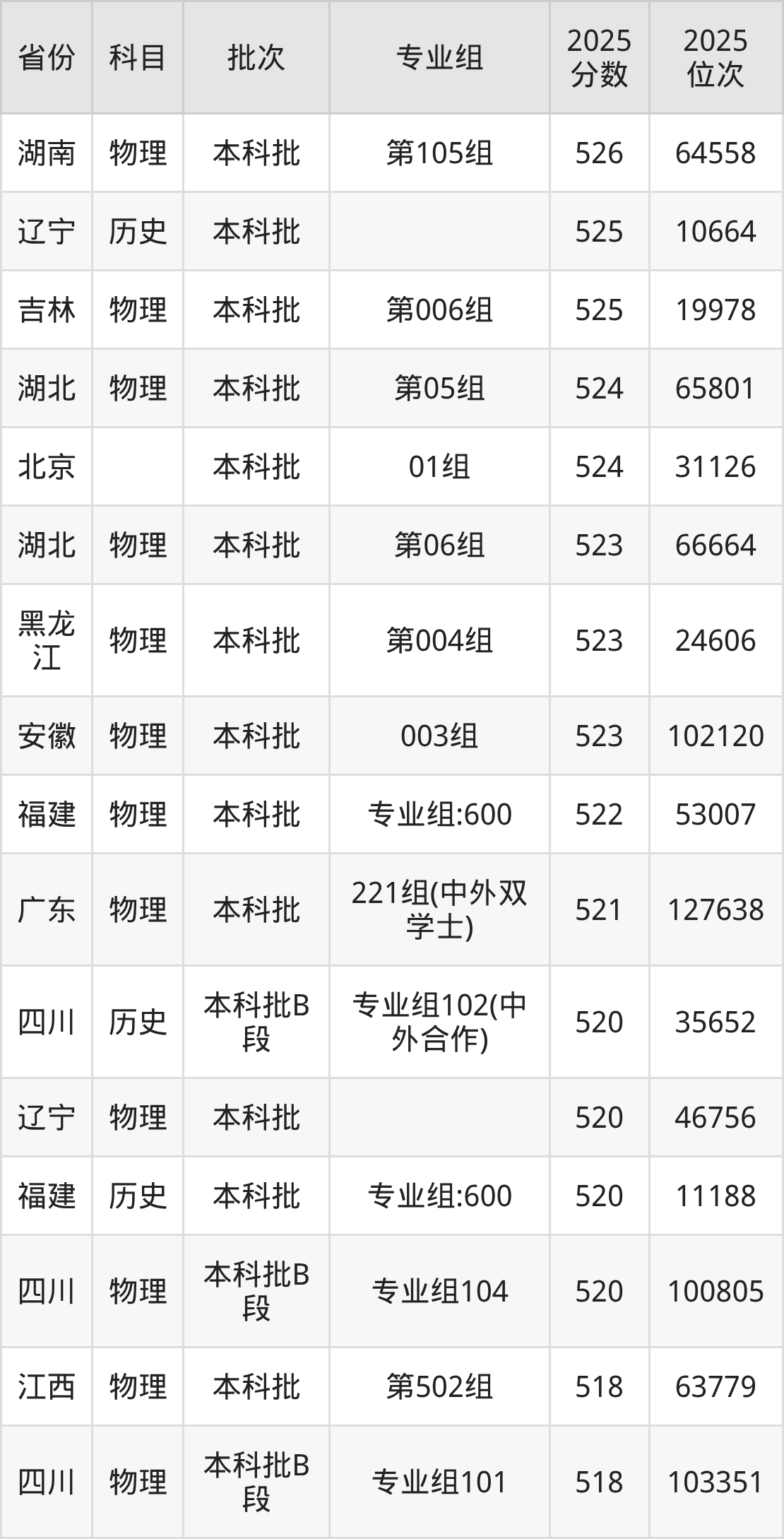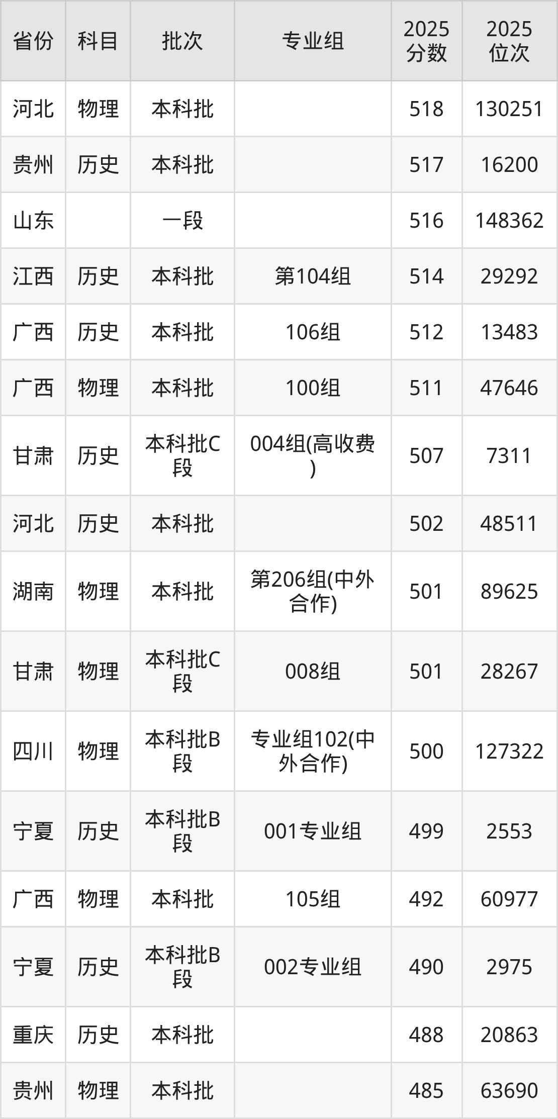 参考2025年山东省高考招录数据,按照分数线从高到低依次为大家展示重庆工商大学各个专业录取分数线。