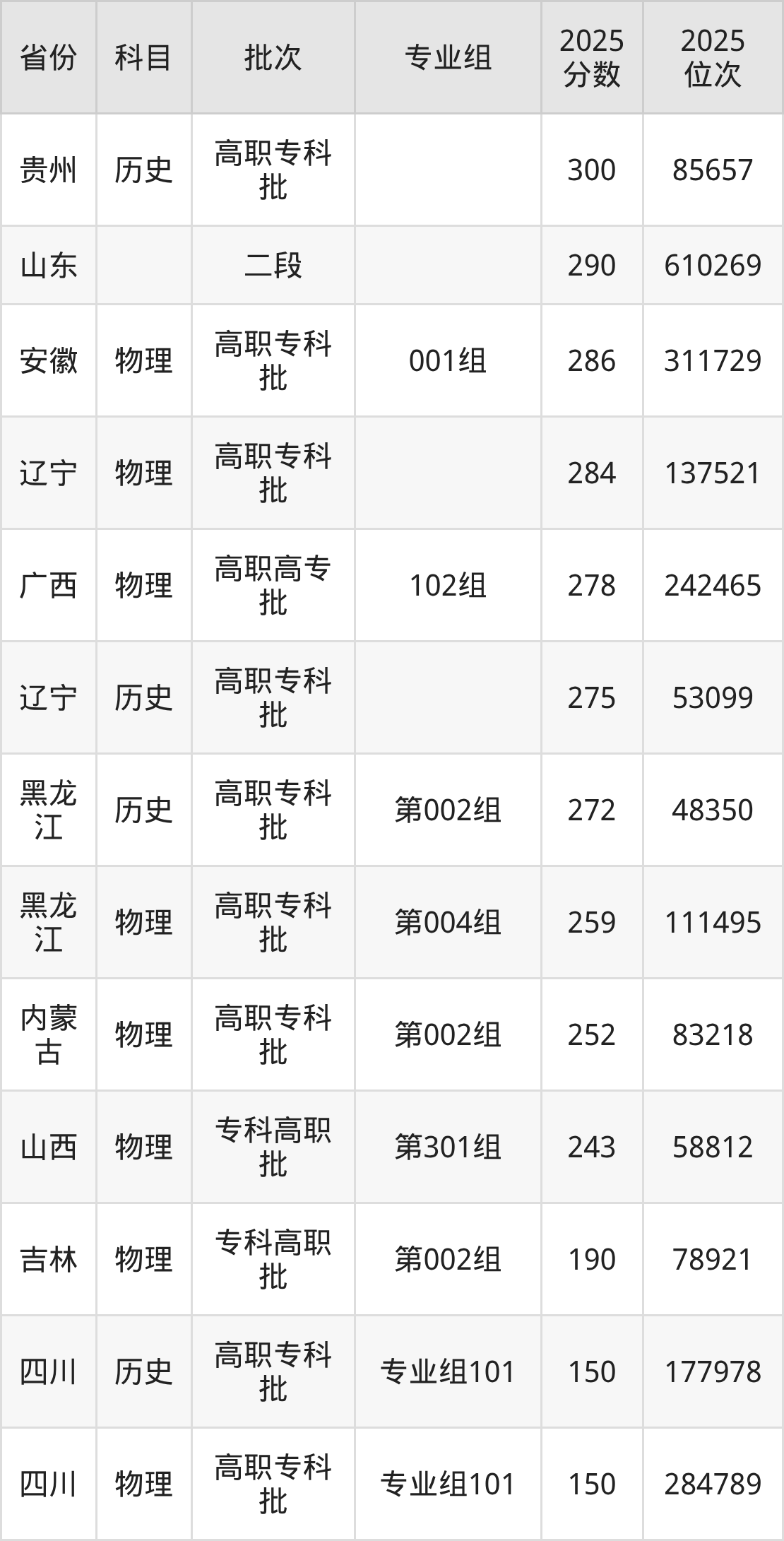 下面是2025年伊春职业学院在全国各省录取最低分数据及位次,各位考生也可作为一个参考。