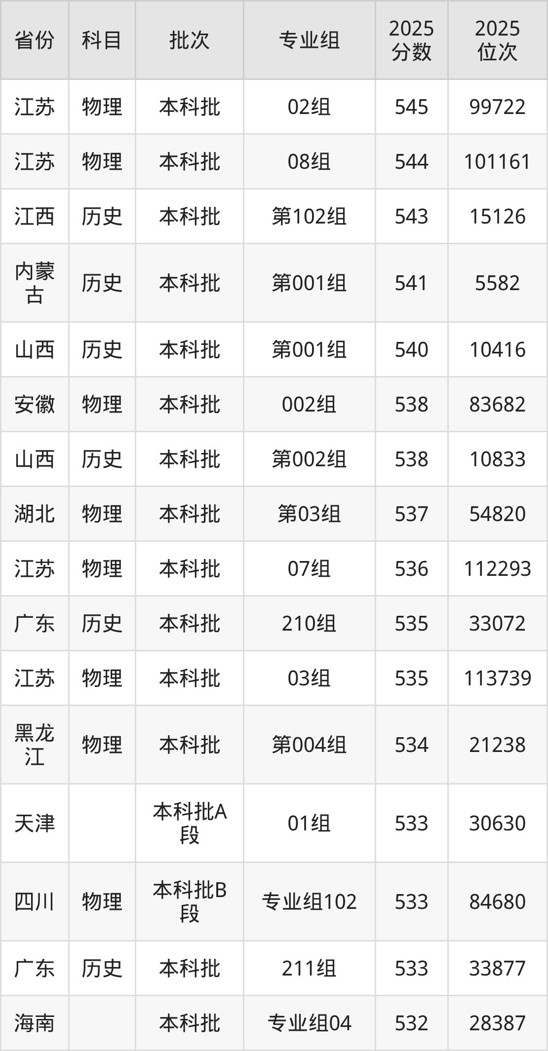 5、工商管理类:540分、位次100034名;