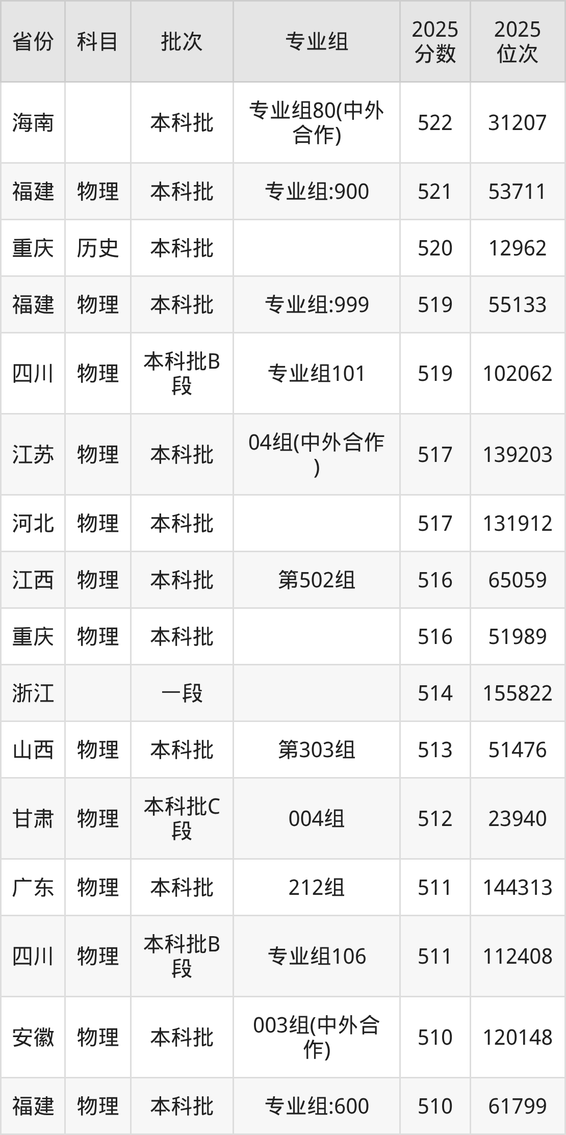12、轻工类:523分、位次133235名;