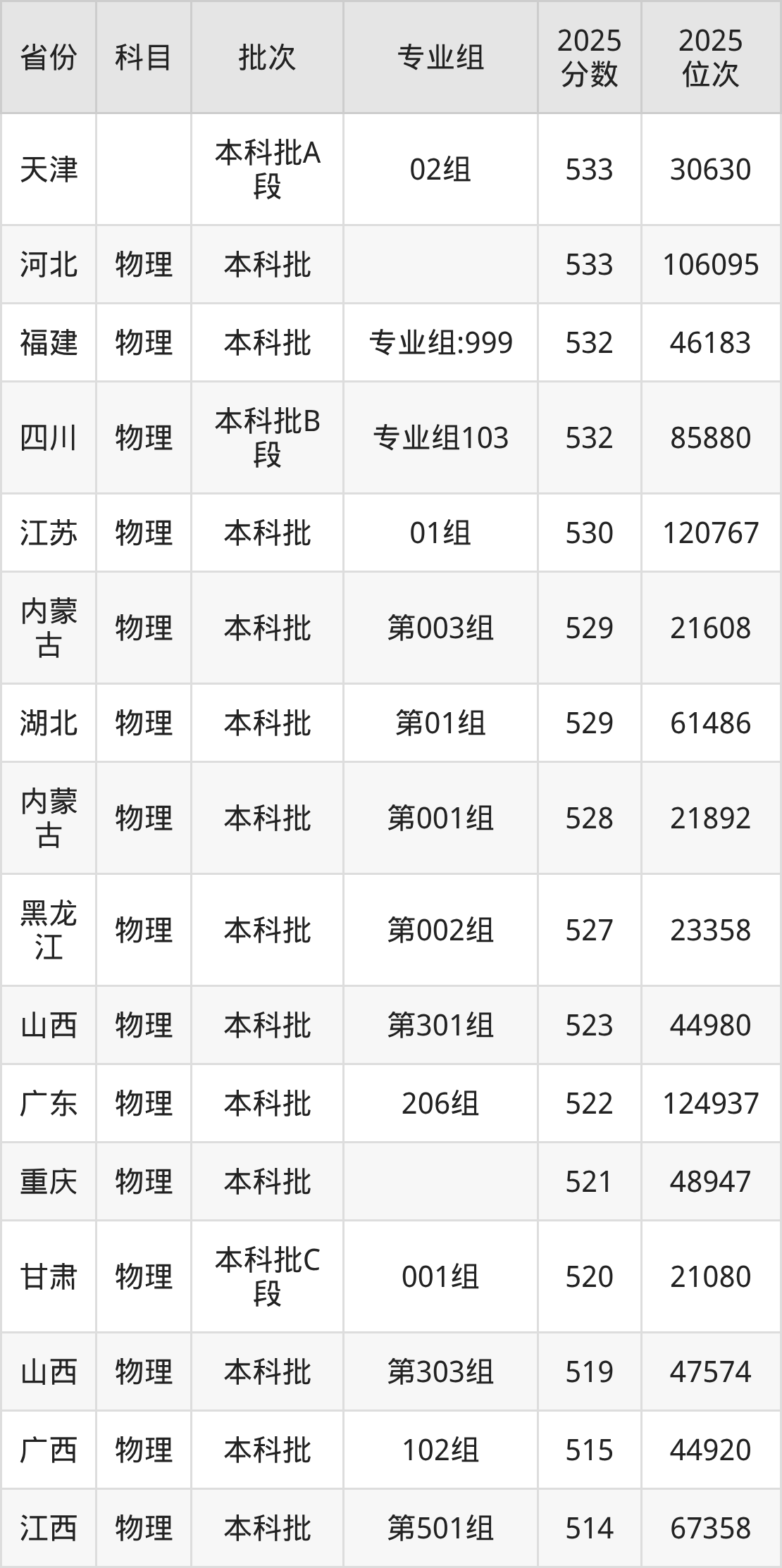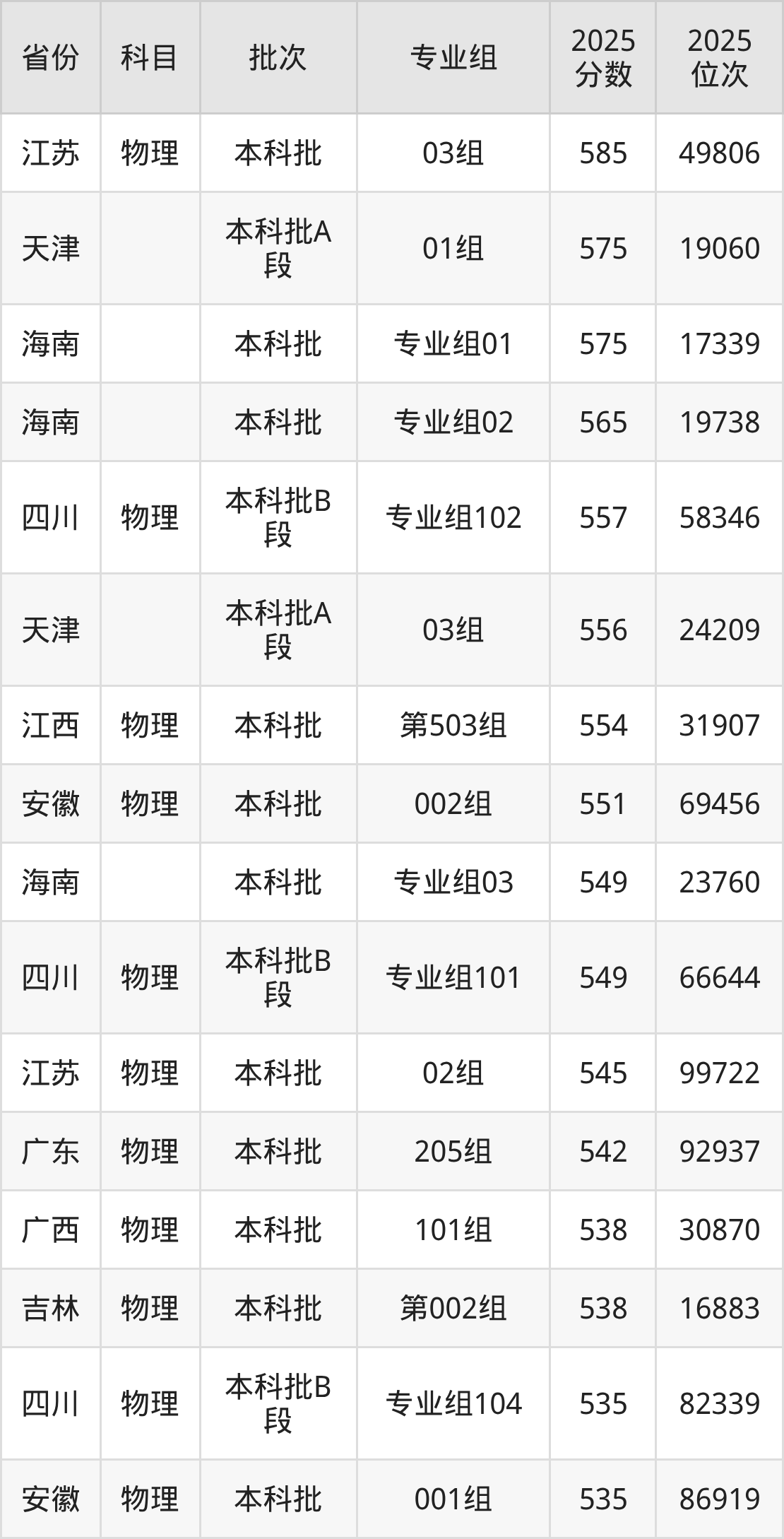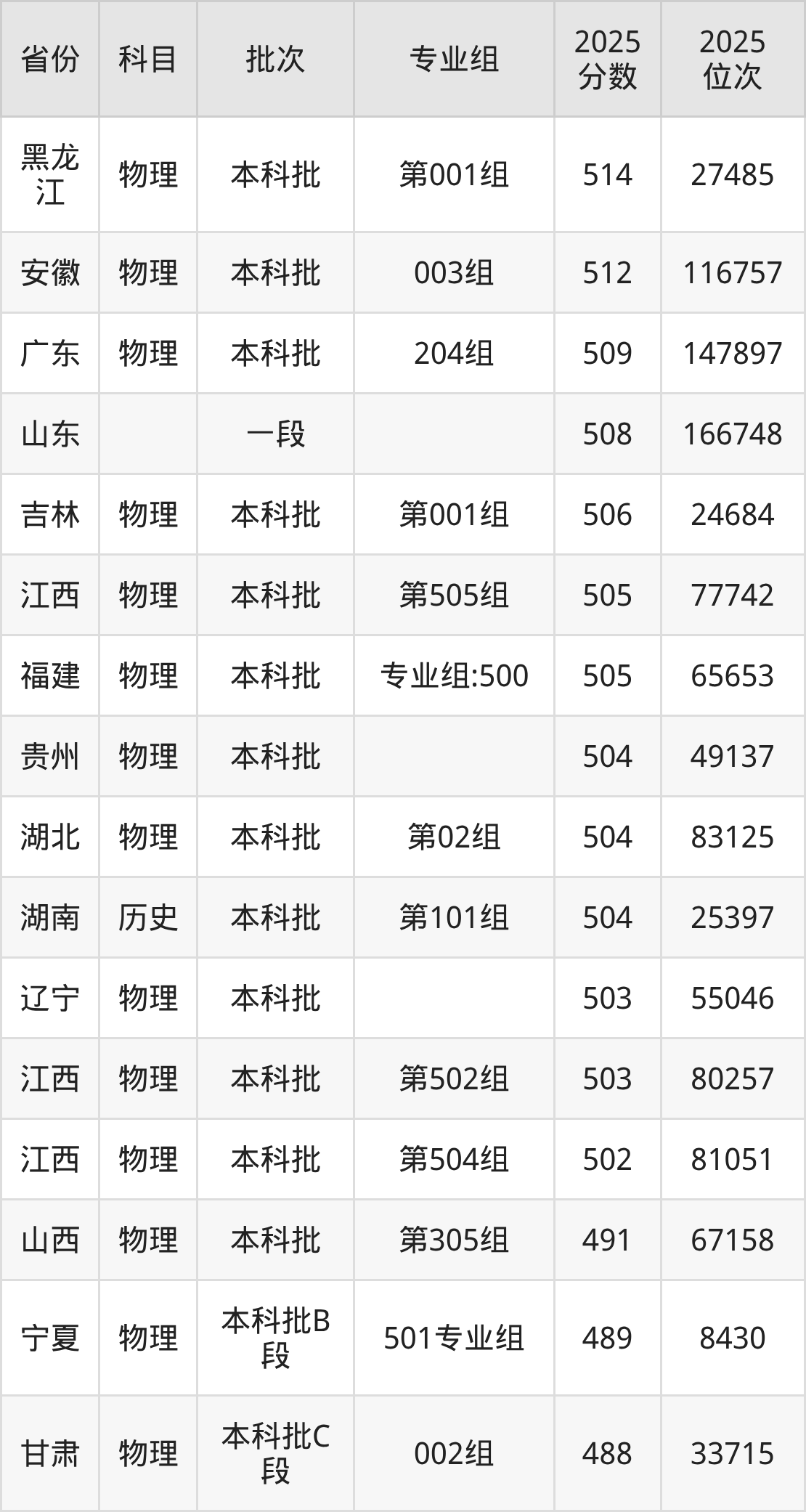 参考2025年山东省高考招录数据,按照分数线从高到低依次为大家展示湖南医药学院各个专业录取分数线。