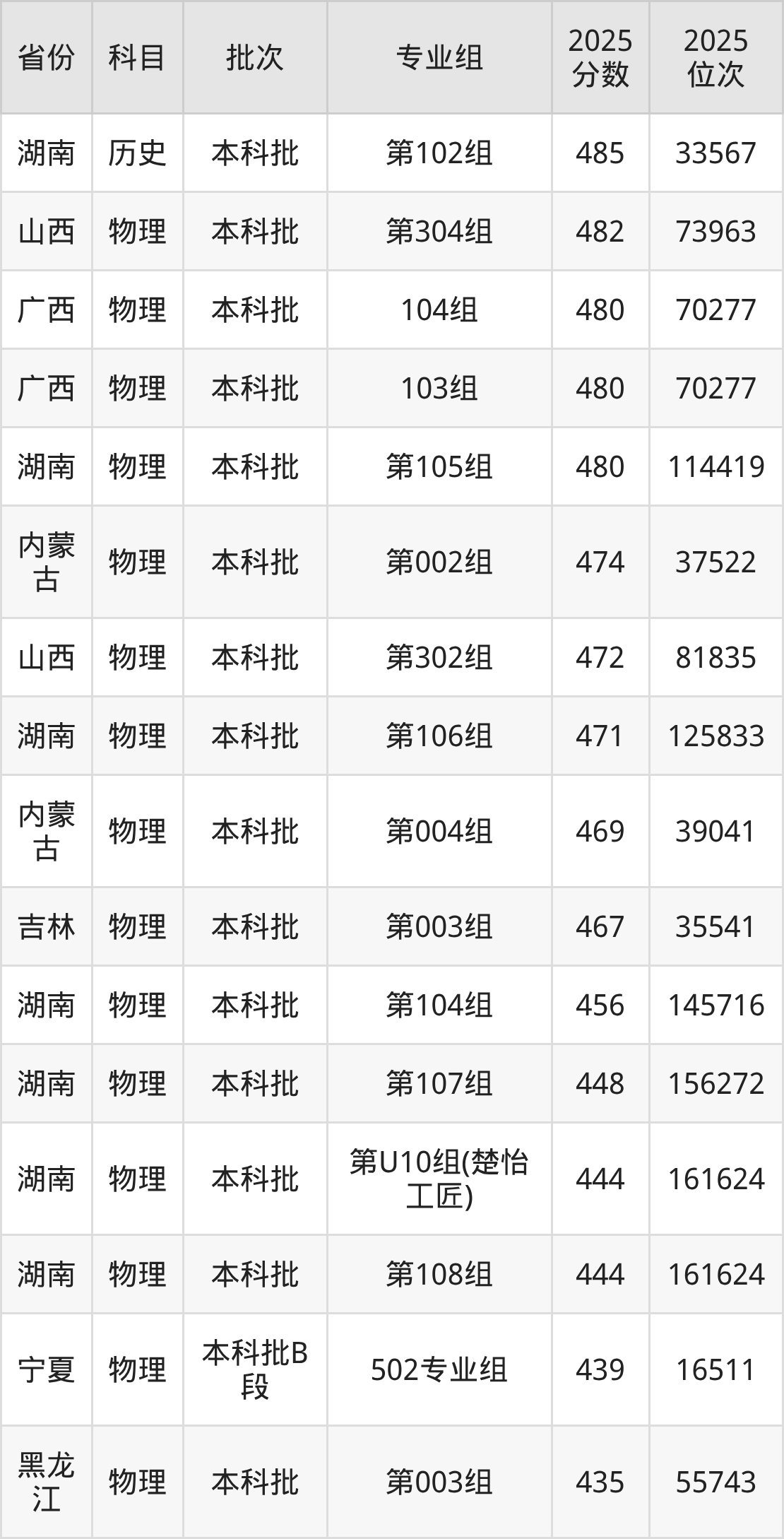 下面是2025年湖南医药学院在全国各省录取最低分数据及位次,各位考生也可作为一个参考。