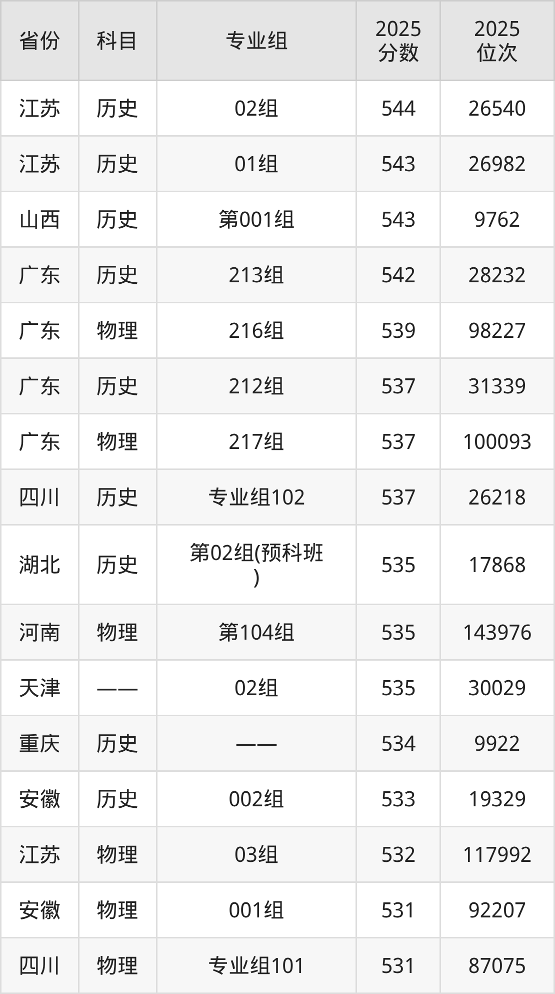 参考2025年山东省高考招录数据,按照分数线从高到低依次为大家展示吉首大学各个专业录取分数线。