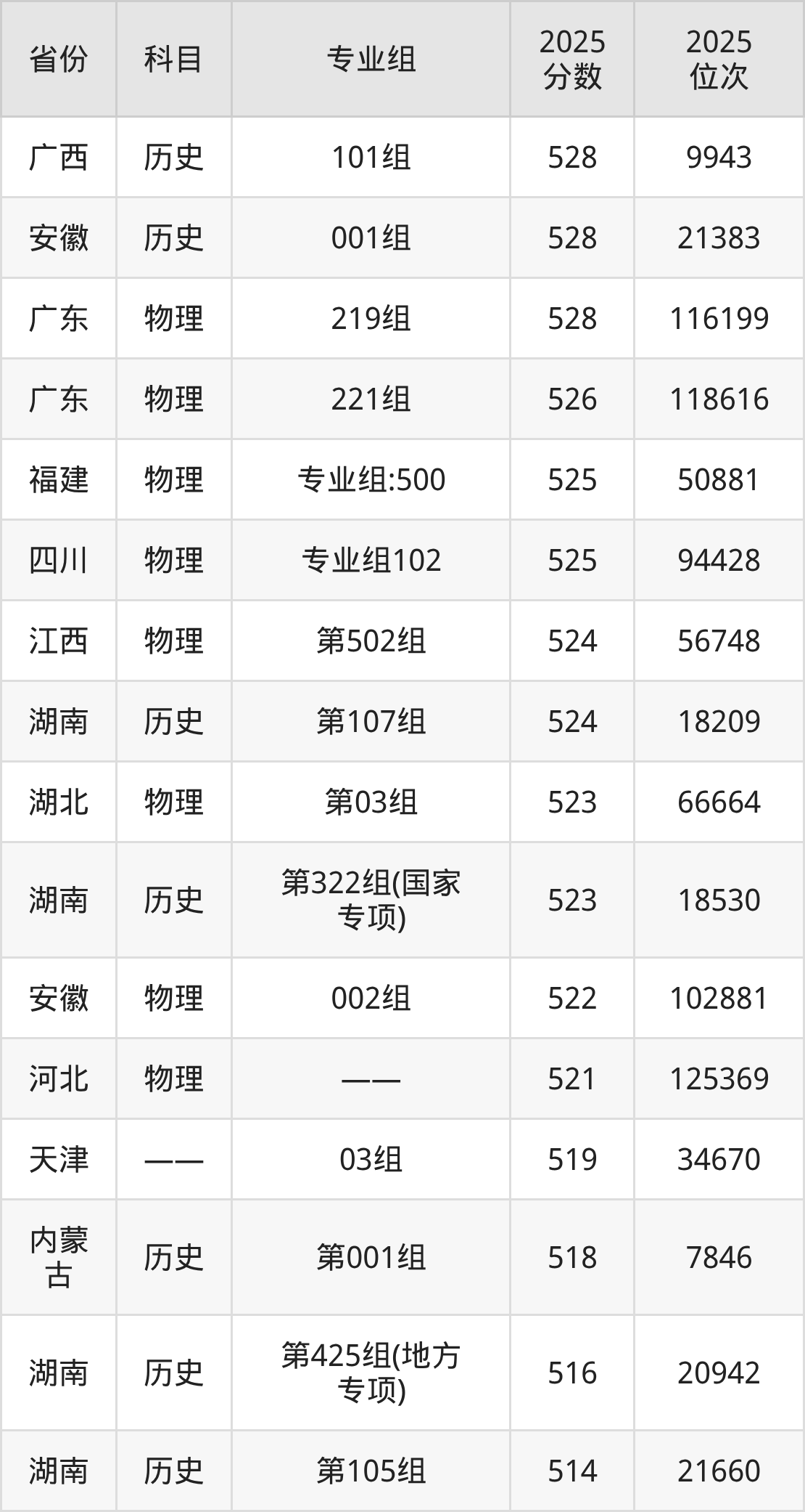 下面是2025年吉首大学在全国各省录取最低分数据及位次,各位考生也可作为一个参考。