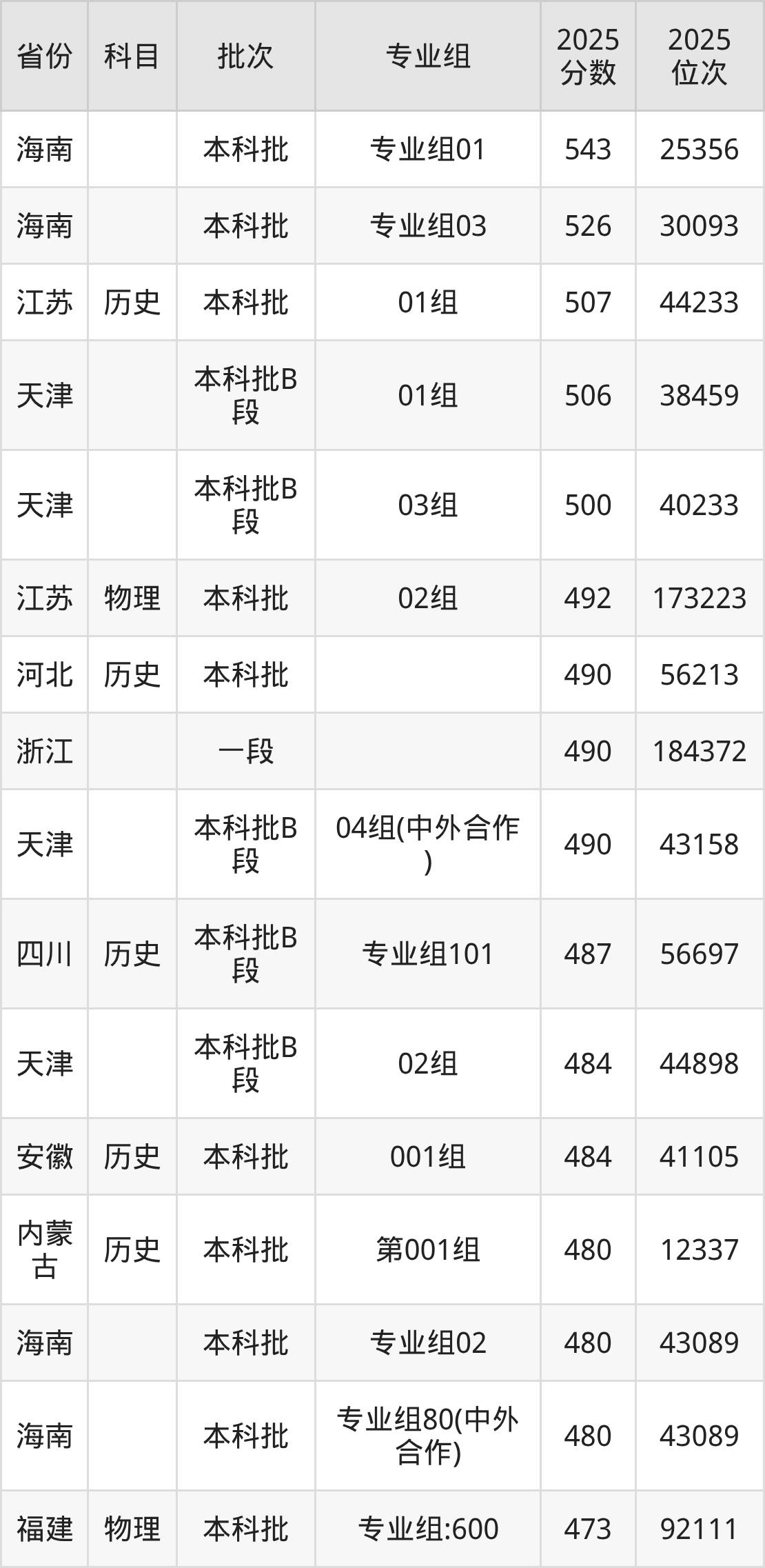2025年青岛黄海学院全国录取分数线149分到543分,录取最高在海南(专业组01)、录取最低在新疆(理科)。