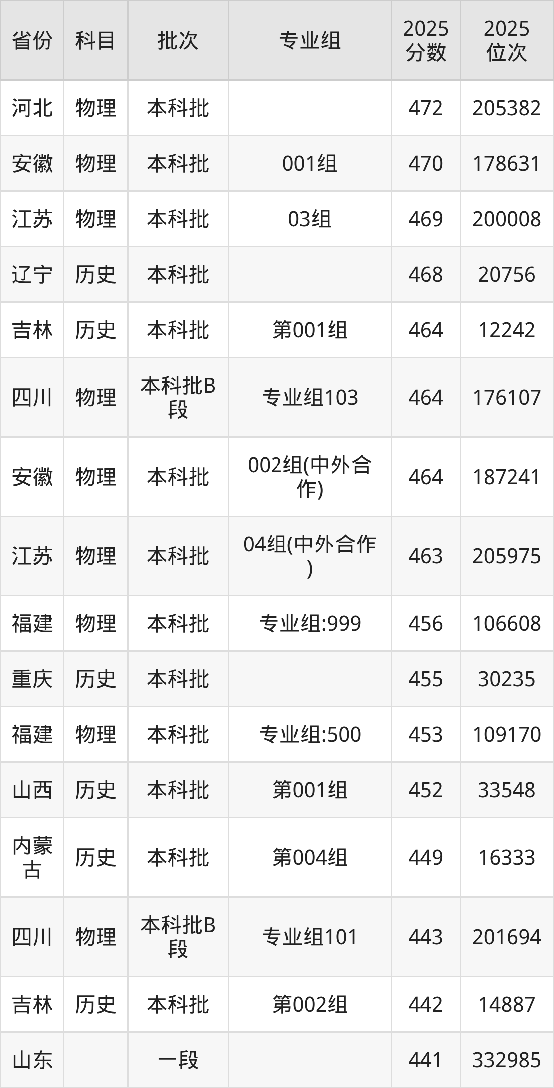2025年青岛黄海学院各专业录取分数线从150分到494分不等,录取分数线最低的专业是大数据与财务管理;录取分数线最高的专业是汉语言文学、会计学。本文将展示青岛黄海学院所有专业最低分数线及位次,供2026届高考生参考。